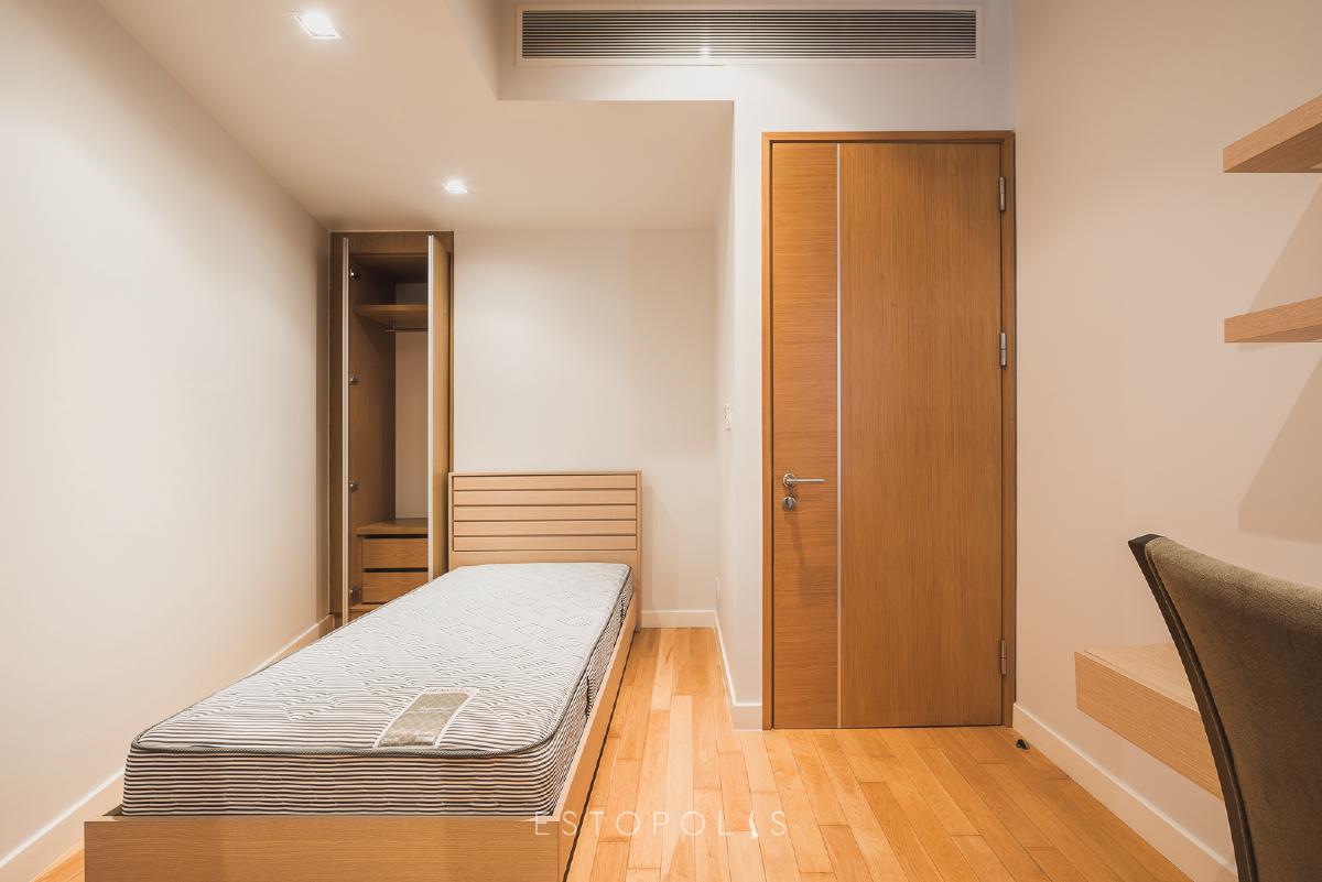 ในห้องนอนเล็กขนาดไม่กว้างหนัก เพียงพอให้ใส่เตียงเดี่ยวหนึ่งหลัง มีตู้เสื้อผ้าบิวท์อินอันเล็กให้