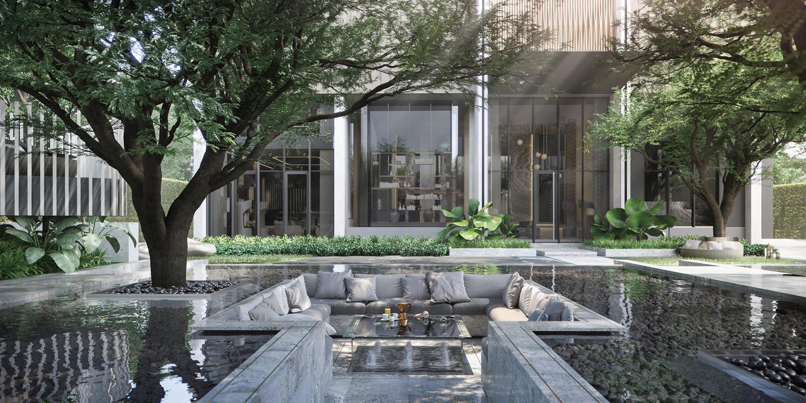 - Garden on Ground พื้นที่การพักผ่อนที่เป็นส่วนตัวมากขึ้นกับพื้นที่พักผ่อนภายนอกอาคารที่ซ่อนตัวอยู่ใต้ร่มเงาต้นไม้ใหญ่และสายน้ำ