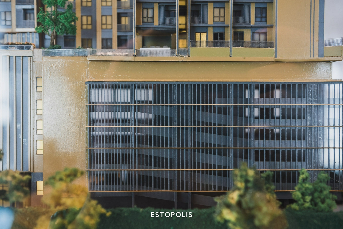 พื้นที่จอดรถจะเริ่มตั้งแต่ที่ชั้น 2 ไปจนถึงชั้น 6 สามารถจอดรถได้ทั้งหมด 47% จากจำนวนยูนิตโดยรวมทั้งหมด (รวมจอดซ้อนคัน)