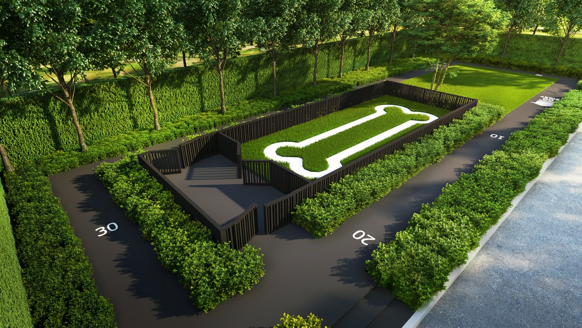 พื้นที่สีเขียวทางด้านหลังสุดของอาคารเป็นพื้นที่พักผ่อนสำหรับสัตว์เลี้ยงและลู่วิ่งออกกำลังกาย ให้ลูกบ้านและสัตว์เลี้ยงแสนรักได้ลงมาวิ่งเล่นออกกำลังกายด้วยกัน
