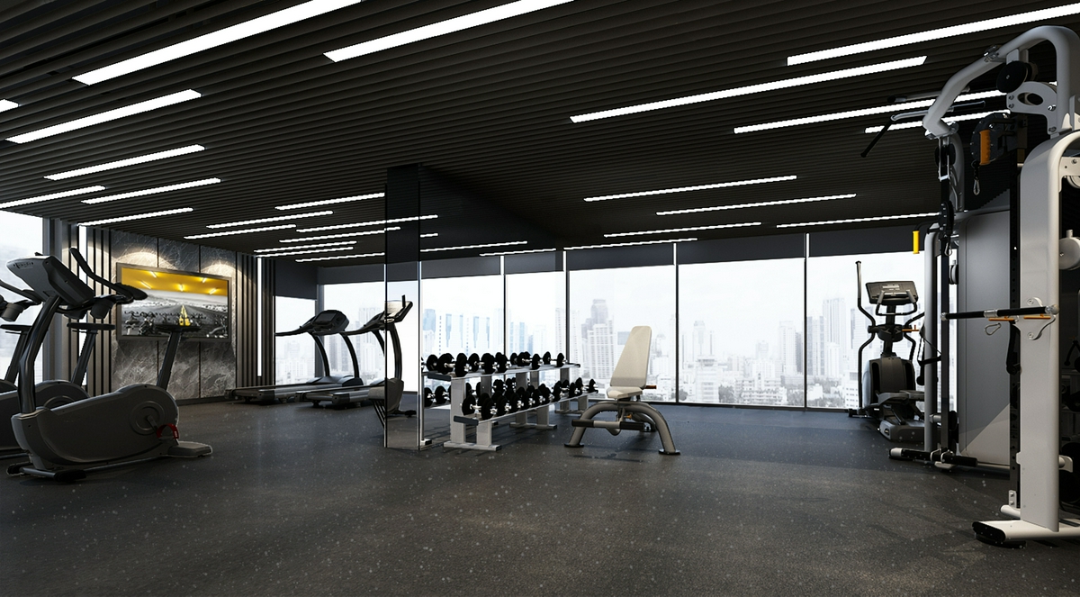 เริ่มต้นสำรวจส่วนกลางของชั้น 7 กันที่ห้อง Fitness พื้นที่ออกกำลังกายขนาดใหญ่ พร้อมอุปกรณ์เครื่องเล่นสำหรับบริหารทุกสัดส่วนของร่างกายอย่างครบครัน ไม่ว่าจะออกกำลังเผาผลาญไขมัน หรือเวทสร้างกล้ามเนื้อ ก็เลือกเล่นได้ตามใจชอบ แถมความพิเศษด้วยบรรยากาศ City View ที่ให้คุณเพลิดเพลินไปกับการเวิร์กเอาต์พร้อม ๆ กับรับชมวิวสวย ๆ ไปในตัว