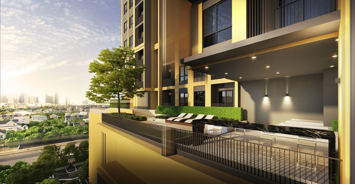 ต่อกันที่ส่วน Outdoor ด้านนอกอาคารฝั่งทิศใต้ พบกับพื้นที่ส่วนกลางสำหรับพักผ่อนสุดชิลล์ 2 ส่วน อย่าง Sun Deck สำหรับนอนรับลม ชมวิวเมืองเพลิน ๆ และมี City Lounge โต๊ะเคาน์เตอร์พร้อมเก้าอี้ ที่ให้คุณได้มาเปลี่ยนบรรยากาศนั่งทานข้าวท่ามกลางบรรยากาศดี ๆ ยามเย็นได้ทุกวัน