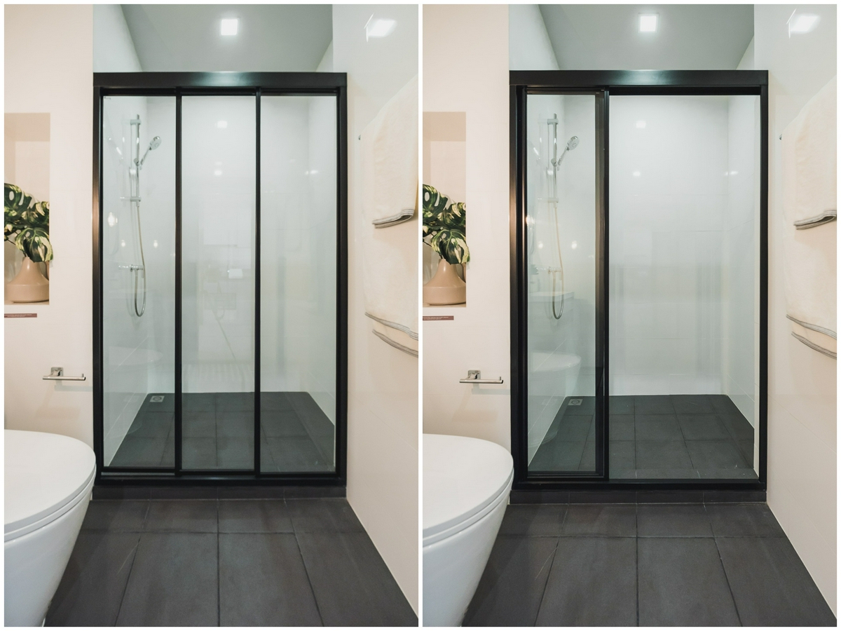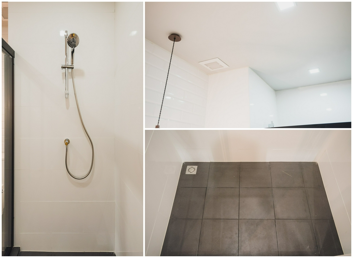 ด้านในส่วน Shower Box ทางโครงการให้เป็น Hand Shower จากแบรนด์ Hafele ภายในมีพื้นที่สำหรับยืนได้แบบสบาย ๆ มาพร้อมระบบระบายอากาศภายในห้อง คุณจึงไม่ต้องกังวลเรื่องกลิ่นไม่พึงประสงค์