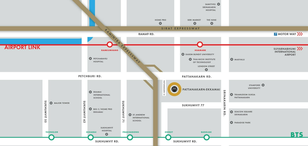 โครงการ Metris Pattanakarn-Ekkamai ตั้งอยู่บนถนน “พัฒนาการ” ซึ่งเป็นหนึ่งในโลเคชันใหม่ในกรุงเทพฯ ที่มีการเปลี่ยนแปลงและมีการพัฒนาขึ้นอย่างต่อเนื่อง และด้วยทำเลที่ตั้งที่อยู่ติดกับแยกคลองตัน ทำให้คุณสามารถเชื่อมต่อไปยังถนน 3 สายสำคัญของกรุงเทพได้อย่างง่ายดาย ไม่ว่าจะเป็น