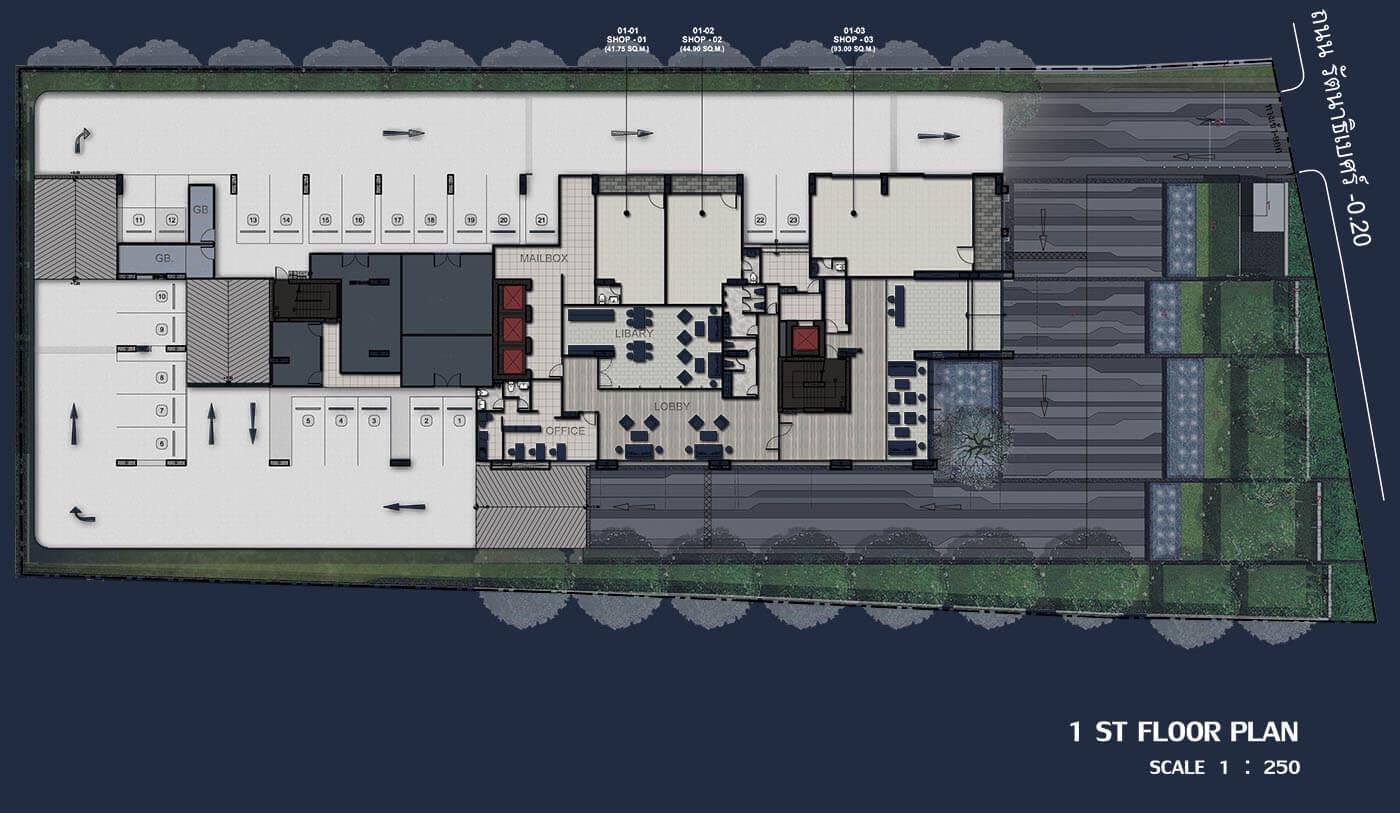 ด้านในสุดถัดจาก Library และ Co-Working Space ไปจะเป็นโถงลิฟท์และ Mailbox โดยตู้จดหมายของโครงการจะแยกให้ตามเลขห้องของลูกบ้าน ดังนั้นทุกคนจะมี Mailbox เป็นของตัวเอง สามารถเข้ามาเช็กจดหมายของตัวเองได้ตลอดเวลา