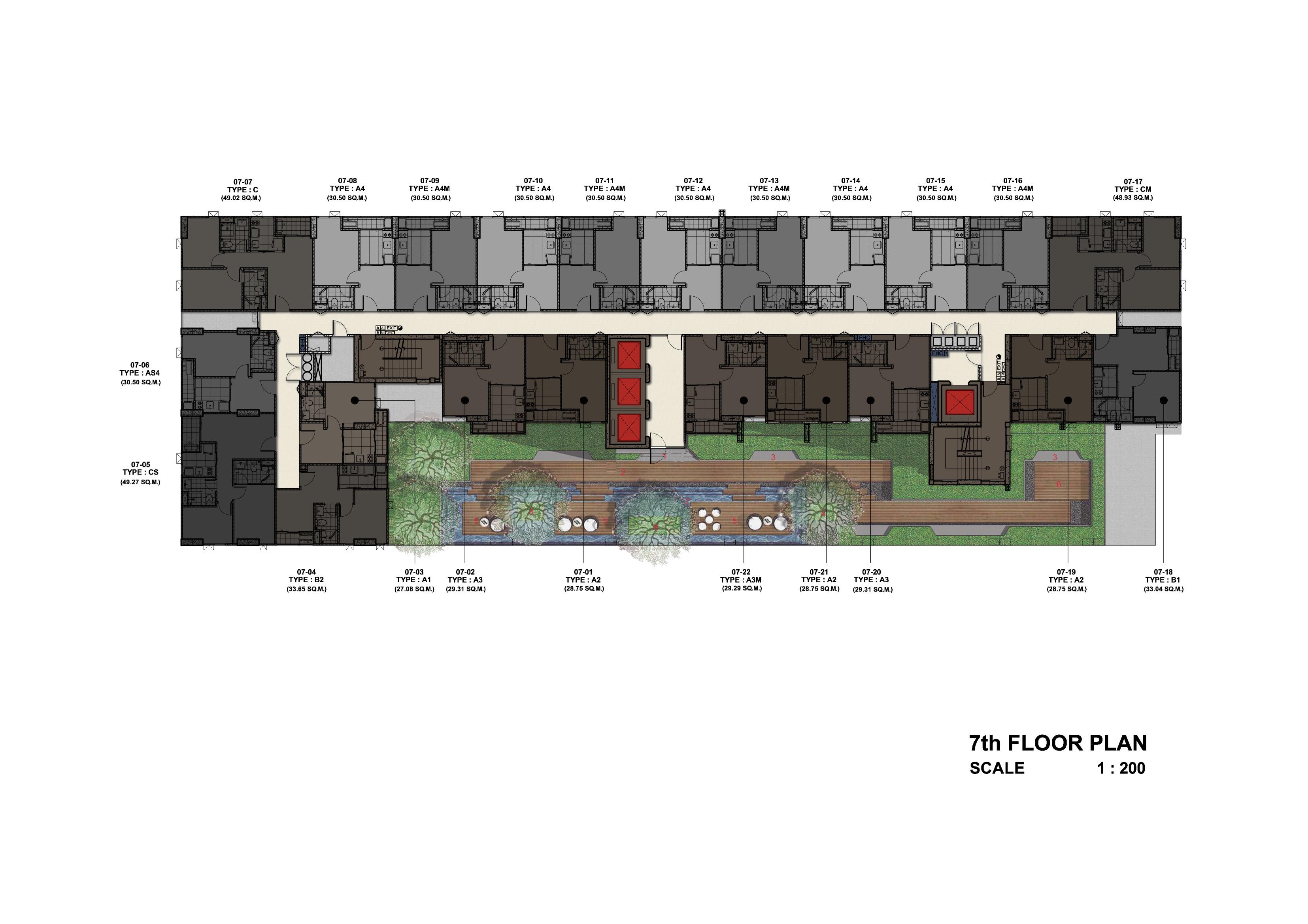 ชั้นพักอาศัยของโครงการจะเริ่มต้นที่ชั้น 7 เป็นต้นไป โดยที่บริเวณชั้น 7 จะมีพื้นที่ส่วนกลางเป็น Sky Garden รวมอยู่ด้วย จึงเหมาะสำหรับผู้ที่ชื่นชอบบรรยากาศผ่อนคลายเป็นพิเศษ สำหรับจำนวนยูนิตพักอาศัยจะมีทั้งหมด 22 ยูนิต