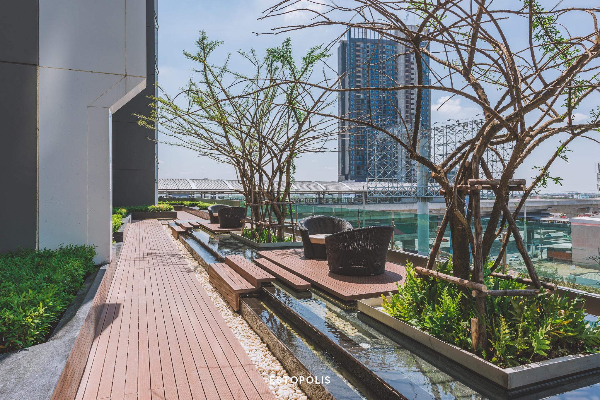 พื้นที่แรกจะเป็นส่วน Outdoor Lobby ที่ลูกบ้านสามารถใช้เป็นพื้นที่นั่งรอรถ หรือพักผ่อนหย่อนใจได้ ซึ่งเราสามารถนำอาหารและเครื่องดื่มเข้ามานั่งทานในบริเวณนี้ได้ตามอัธยาศัย ดังนั้นหากใครอยากเปลี่ยนบรรยากาศการนั่งสังสรรค์กับเพื่อนฝูง ก็สามารถเข้ามาใช้พื้นที่ส่วนของ Outdoor Lobby แห่งนี้ได้เลย