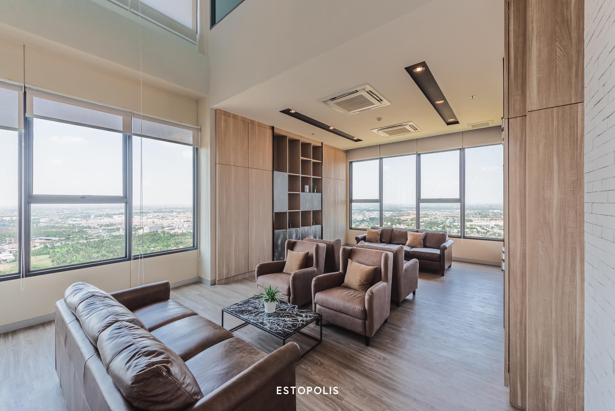 Sky Lounge หรือ ‘ห้องนั่งเล่น’ จะออกแบบเพดานให้ยกสูง Double Volume ให้ความรู้สึกโล่งกว้าง ปลอดโปร่ง เหมาะกับการนั่งชมวิวเมืองเพื่อผ่อนคลายความเครียด และความเหนื่อยล้าจากการทำงาน