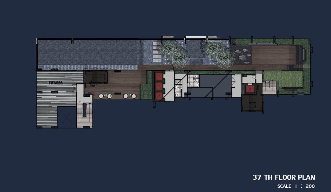 สำหรับชั้นที่ 37 จะเป็นชั้นของพื้นที่ส่วนกลางโดยเฉพาะ ซึ่งจะประกอบไปด้วย Sky Infinity Edge Swimming Pool, Sky Kid Pool และ Fitness ทำให้เราเพลิดเพลินไปกับวิวแม่น้ำเจ้าพระยาและบรรยากาศวิวเมืองไปพร้อมๆ กันได้อย่างเต็มที่