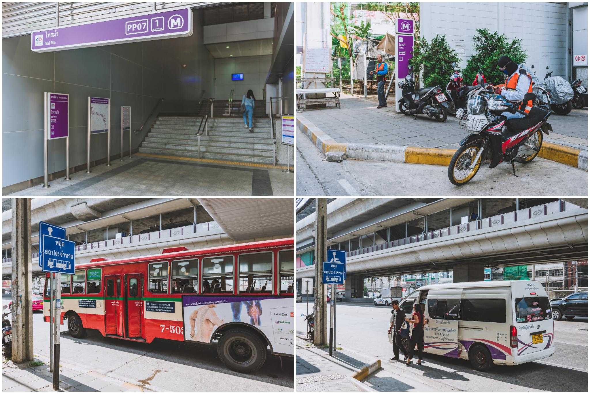 นอกจากนี้ด้านหน้าสถานีก็ยังมีบริการขนส่งสาธารณะรูปแบบอื่นอย่าง วินมอเตอร์ไซค์, รถตู้ และรถเมล์ หากวันไหนที่ไม่ต้องเร่งรีบมากนัก อาจเปลี่ยนมาโดยสารขนส่งสาธารณะรูปแบบอื่นๆ ก็สะดวก