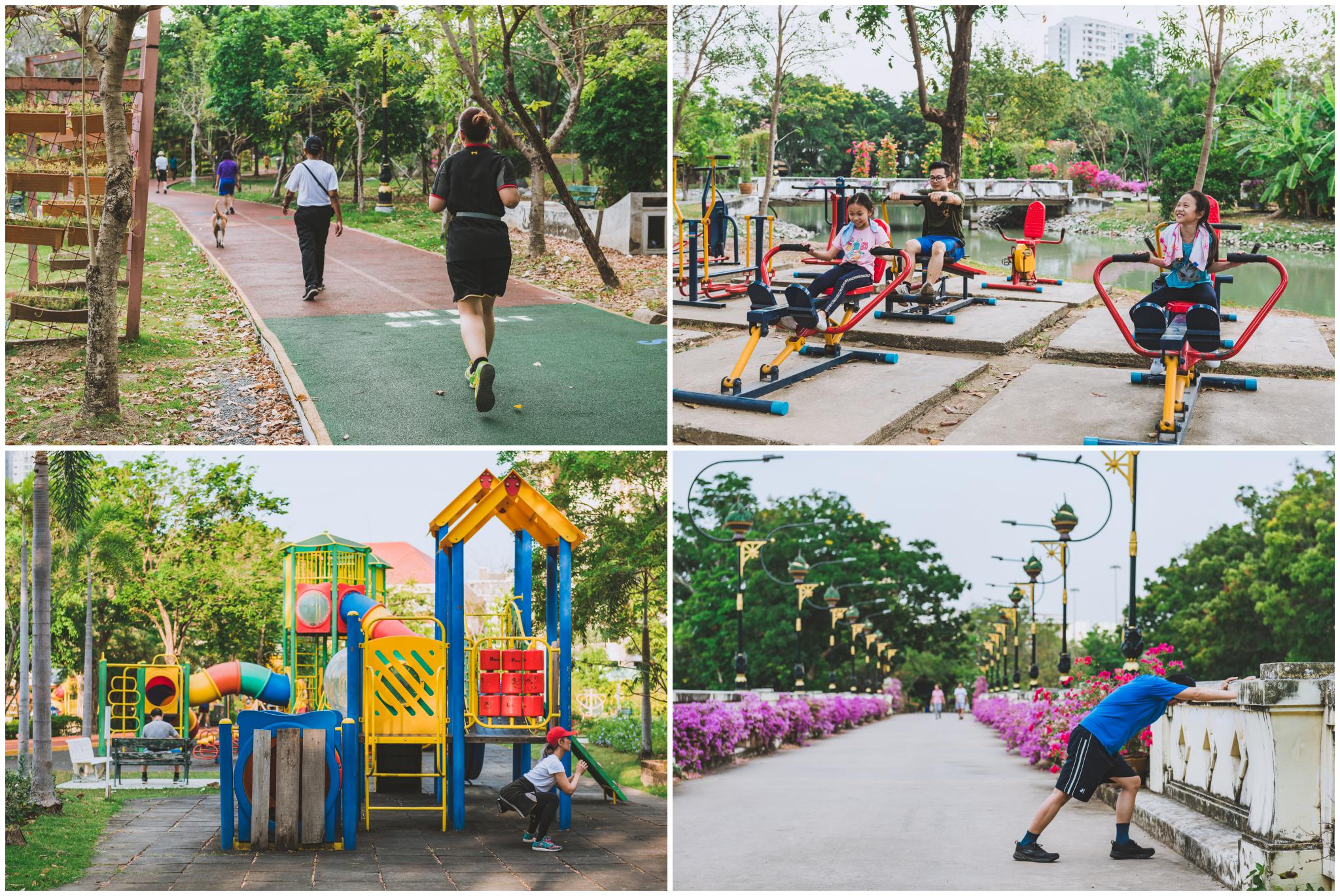ส่วนใครที่อยากหาสถานที่ออกกำลังกลางแจ้ง ออกมาสูดอากาศบริสุทธิ์ก็แนะนำว่าห้ามพลาด เพราะที่สวนแห่งนี้จะมีของเล่นสำหรับการบริหารร่างกาย, สนามเด็กเล่นขนาดเล็ก และบ่อน้ำกลางสวนอีกด้วย