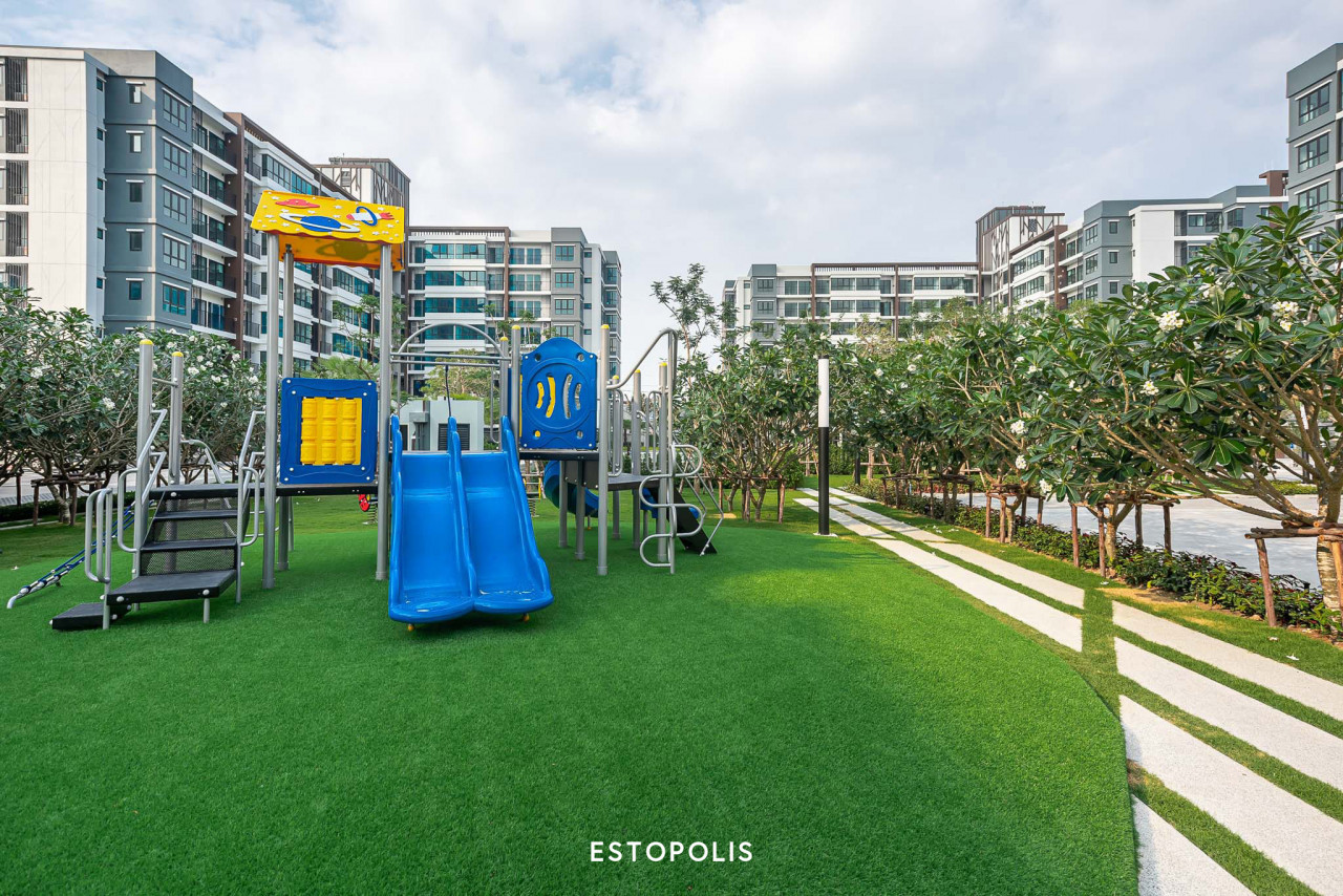 - Supalai City Resort Sukhumvit 107 ออกแบบสไตล์รีสอร์ตที่สอดรับกับการพักผ่อนด้วยพื้นที่ส่วนกลางขนาดใหญ่ใจกลางโครงการ มีพื้นที่สีเขียวเกือบ 3 ไร่ สามารถมองเห็นวิวสวย ๆ ได้ชัดเจน