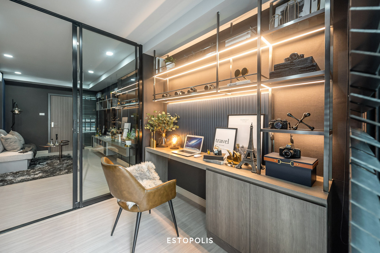 เปลี่ยนบรรยากาศการทำงาน รองรับไลฟ์สไตล์คนรุ่นใหม่ด้วย Sharing Space กว้างขวาง ซึ่งอยู่บริเวณด้านในโครงการ เป็นคลับเฮาส์จุดที่ 2 ทำหน้าที่เป็น Co-Working คอยให้ทุกคนเข้ามานั่งทำงาน นั่งประชุม หรือนั่งอ่านหนังสือได้อย่างอิสระ ภายใต้บรรยากาศผ่อนคลายผสานกับความหรูหรา ตกแต่งพื้นด้วยกระเบื้องลายหินอ่อนเงางาม สอดรับกับชุดโซฟา เฟอร์นิเจอร์ และชั้นหนังสือสไตล์โมเดิร์น โทนสีสุภาพที่ให้ความรู้สึกสงบ สุขุมยามเข้ามาใช้งาน