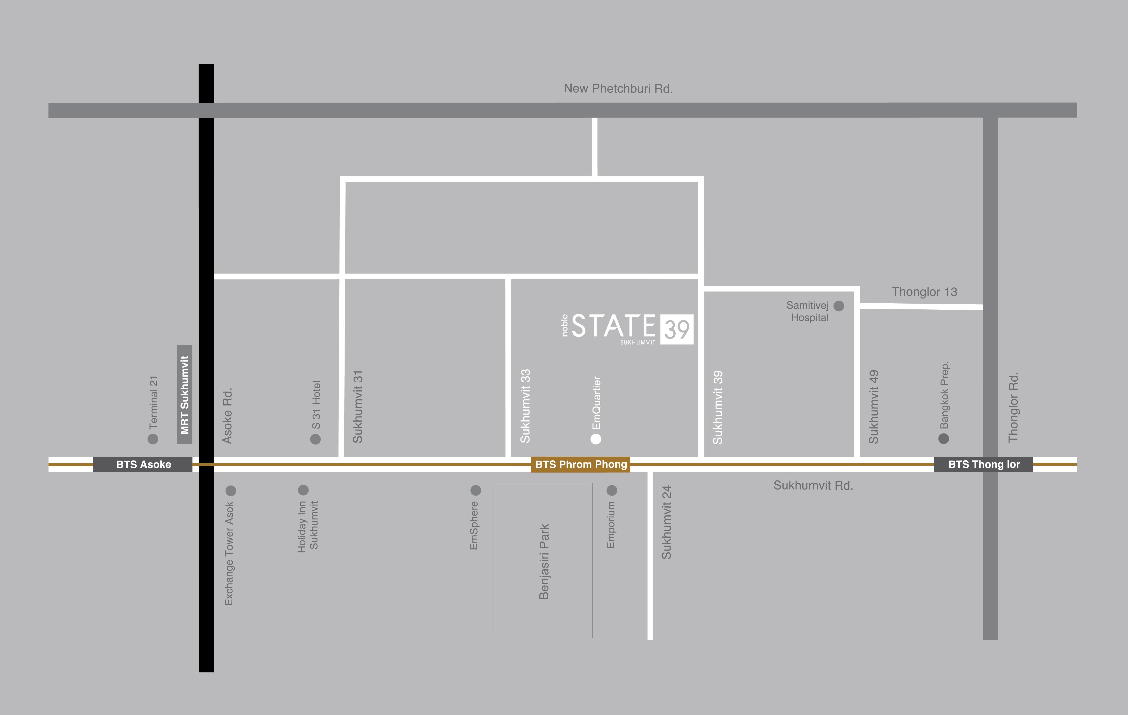 นอกจากจะดีไซน์ตัวโครงการให้รองรับรูปแบบการใช้ชีวิตของคนทันสมัยแล้ว โครงการ Noble State 39 (โนเบิล สเตท 39) ยังโดดเด่นด้านทำเล ที่ตั้งอยู่ในย่าน Prime Area อย่าง ‘พร้อมพงษ์’ ทำเลในฝันที่ขยายพื้นที่ต่อมาจากแยกอโศกลงไปเรื่อยๆ จรดย่านทองหล่อ ซึ่งทั้งหมดนี้ล้วนเป็นเขตธุรกิจ CBD ที่เต็มไปด้วยสิ่งอำนวยความสะดวกมากมาย เรียกได้ว่า...แค่มาอยู่ในย่านนี้ก็สัมผัสได้ถึงการใช้ชีวิตสะดวกสบาย เพราะรายล้อมไปด้วยแหล่งอาคารสำนักงาน, แหล่งแฮงค์เอาท์ รวมไปถึงที่อยู่อาศัยระดับพรีเมียมที่จะช่วยยกระดับชีวิตของคุณให้ดีขึ้นไปอีกขั้น