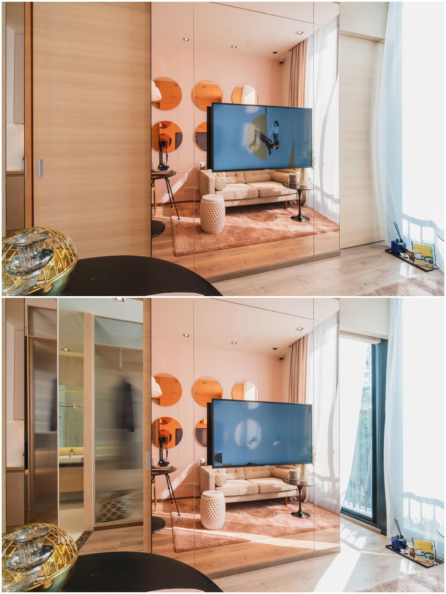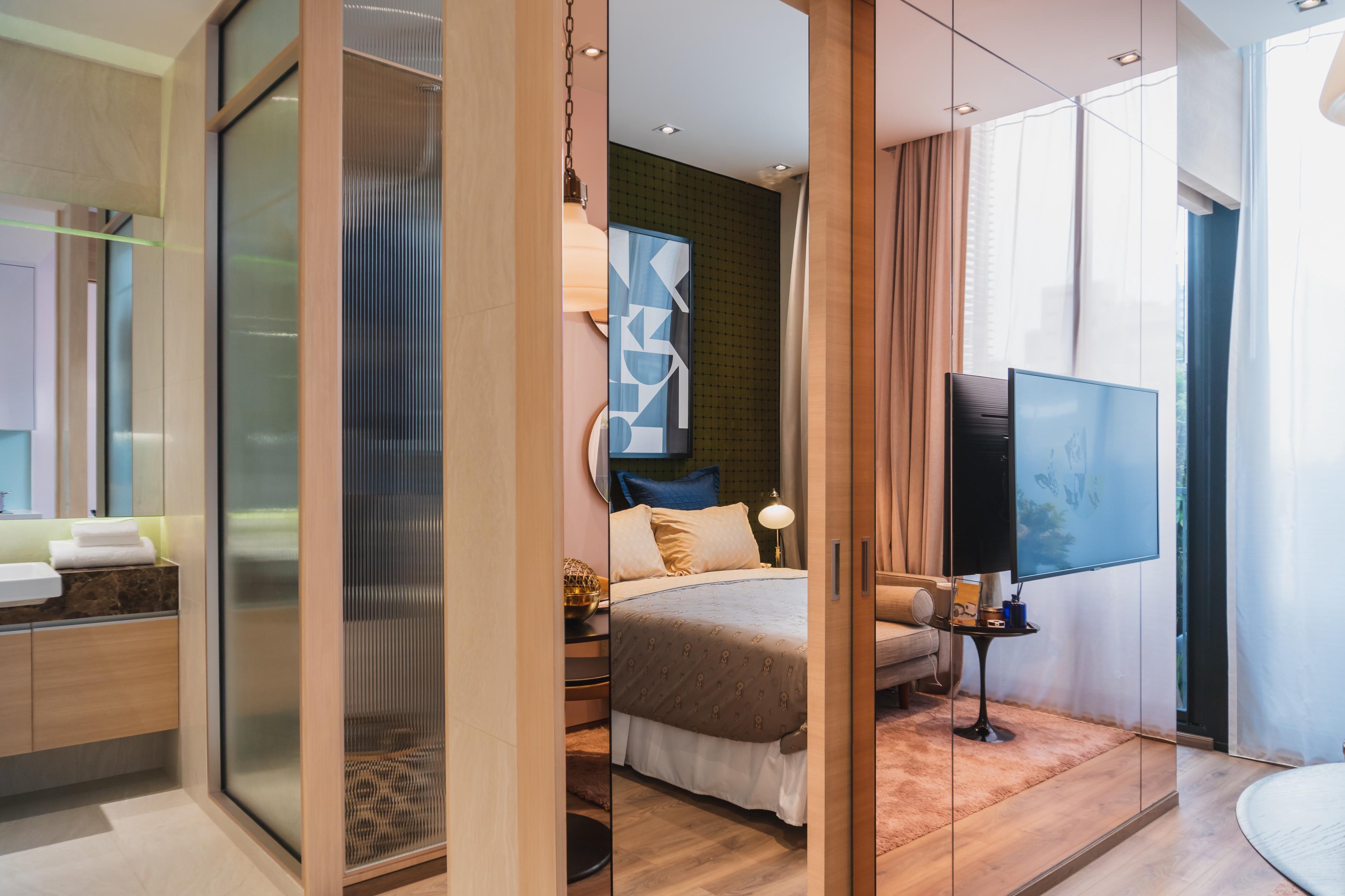 สำหรับจุดเด่นอีกอย่างของห้องแบบ 1 ห้องนอน โครงการ โนเบิล สเตท 39 (Noble State 39) จะอยู่ที่ประตูกั้นห้องบานสไลด์ ความสูง 2.4 เมตร ที่ให้คุณเชื่อมต่อการใช้ชีวิตในแต่ละโซนได้อย่างอิสระ เน้นความลื่นไหลและคล่องตัวให้ทุกกิจกรรมสามารถเชื่อมถึงกันได้ บรรยากาศภายในห้องจึงดูกว้างขวาง ไม่อึดอัดคับแคบ แตกต่างจากห้อง 1 ห้องนอนทั่วๆ ไป