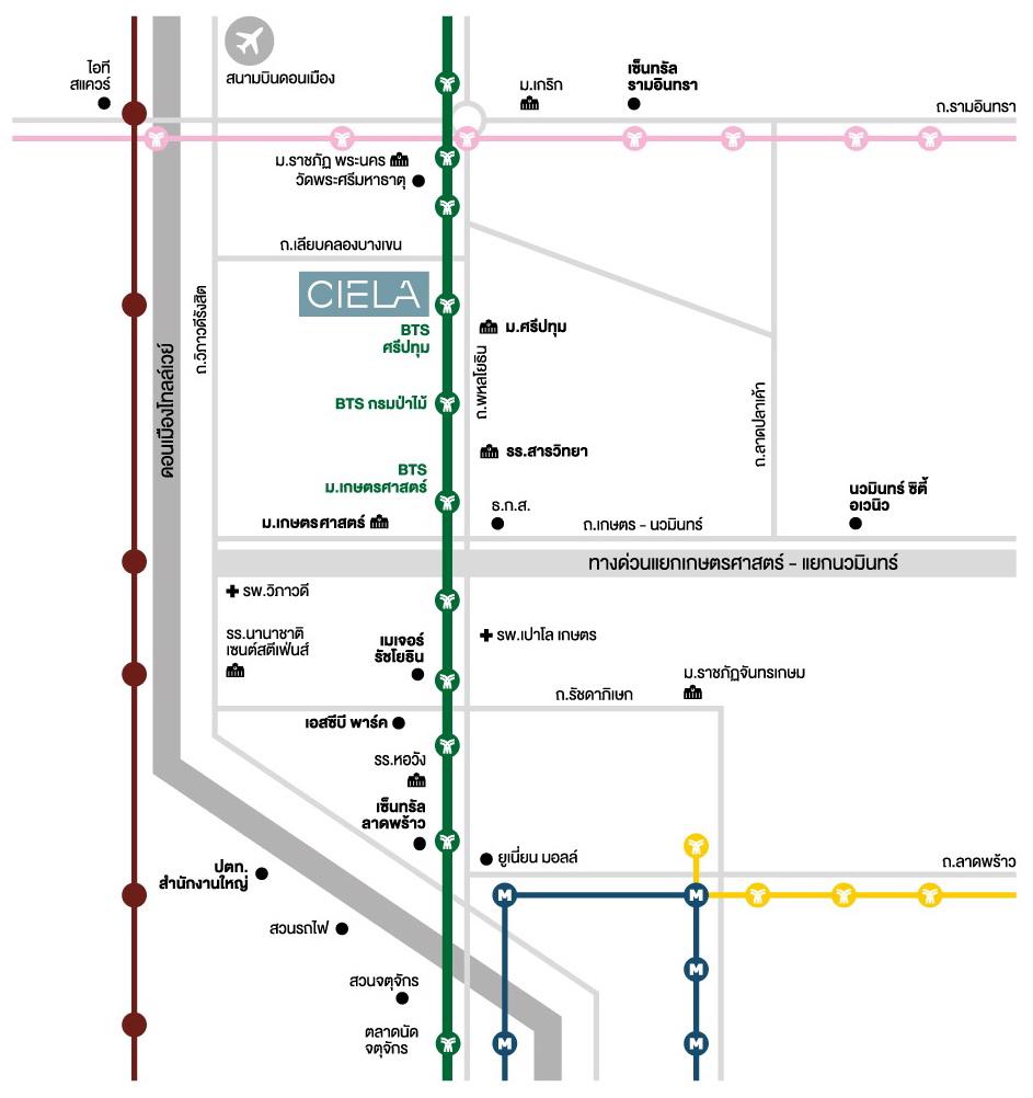 การเดินทางไป คอนโด เซียล่า ศรีปทุม (CIELA Sripatum) สะดวกและรวดเร็ว