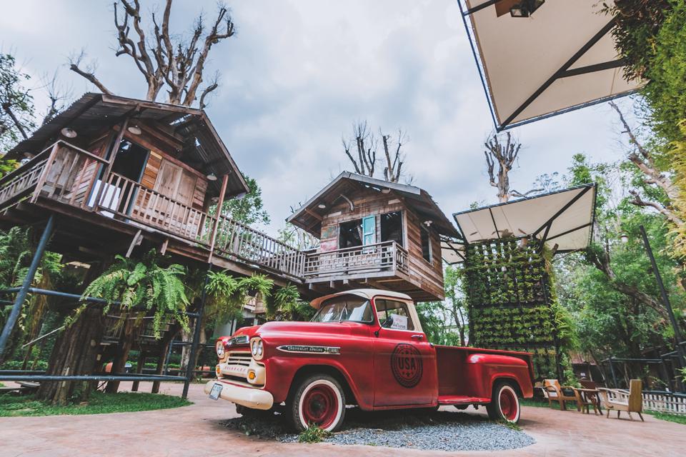 ภายในตกแต่งด้วยบ้านไม้สไตล์ไทยประยุกต์ เข้ากับบรรยากาศสีเขียวของธรรมชาติที่กระจายอยู่ทั่วพื้นที่ ให้ความสดชื่นน่าเดินเที่ยว