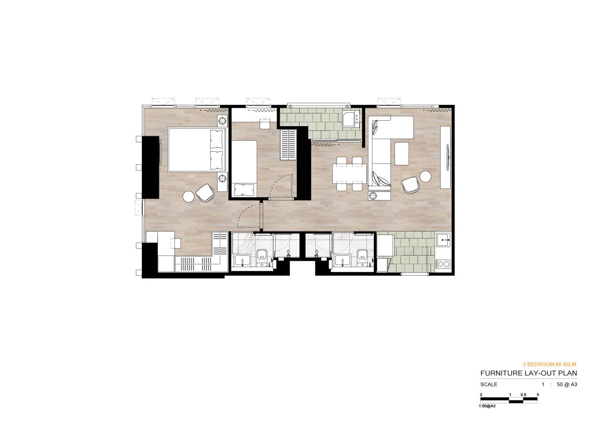 - 2 Bedrooms ขนาดพื้นที่ใช้สอย 60.00 ตารางเมตร