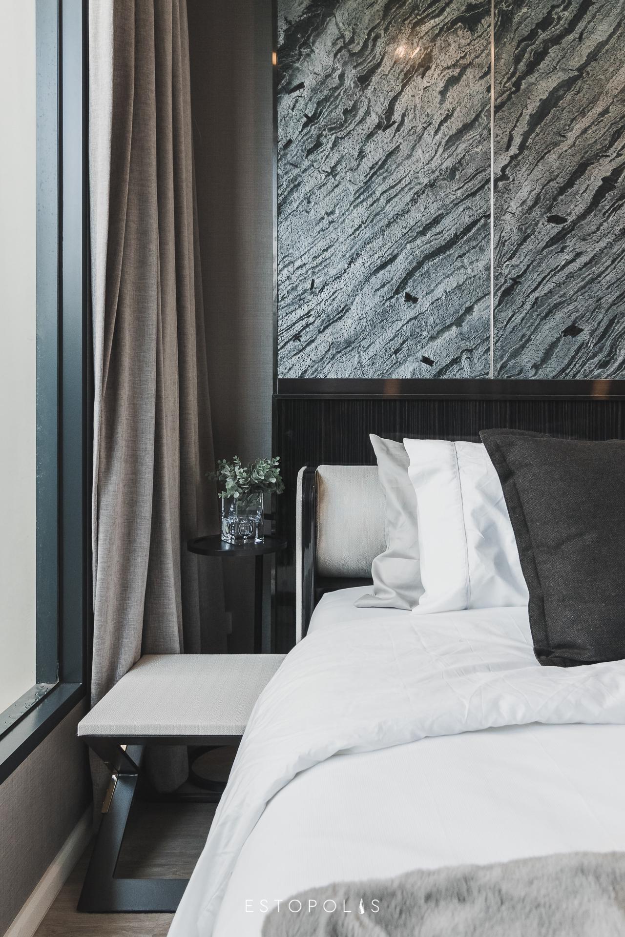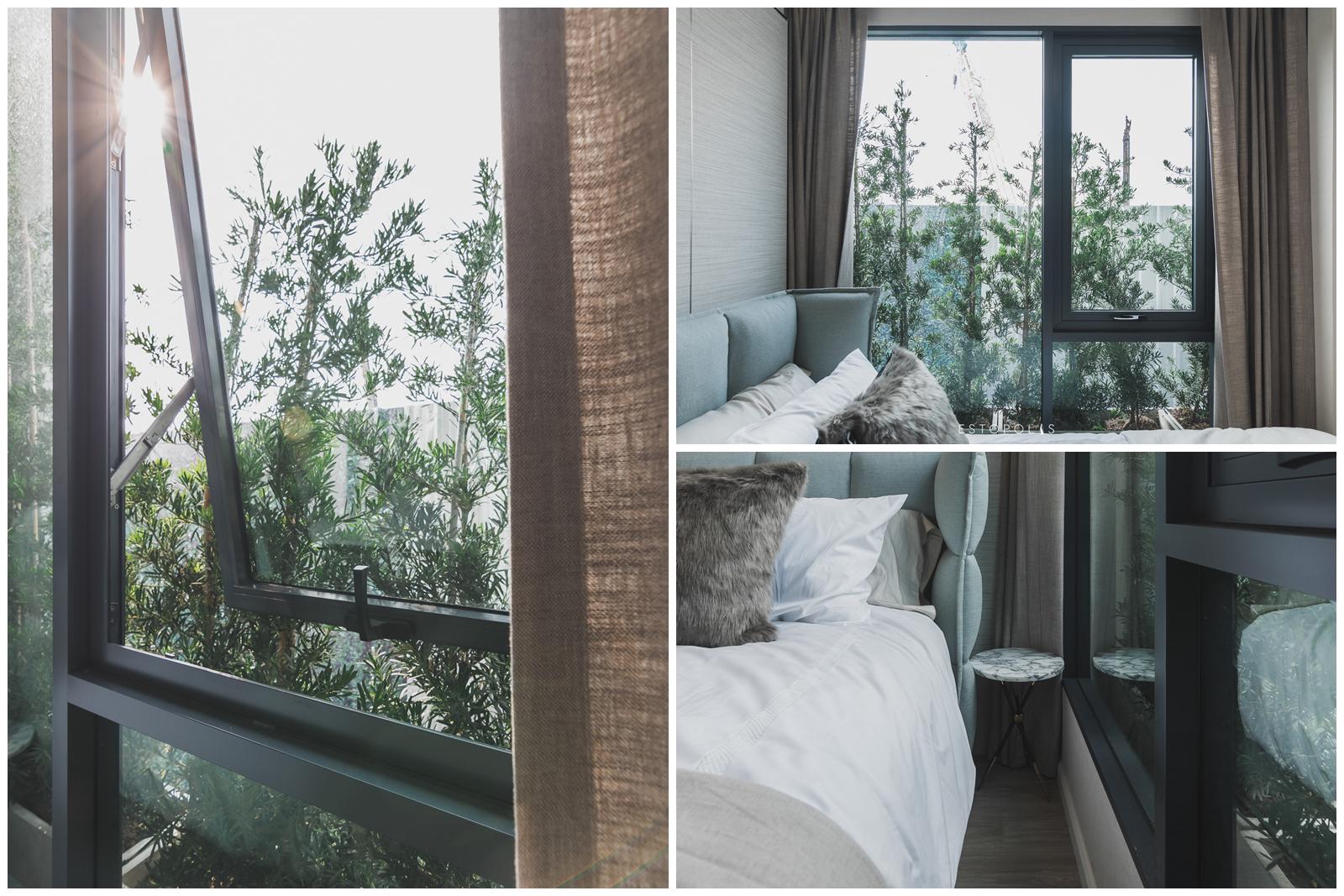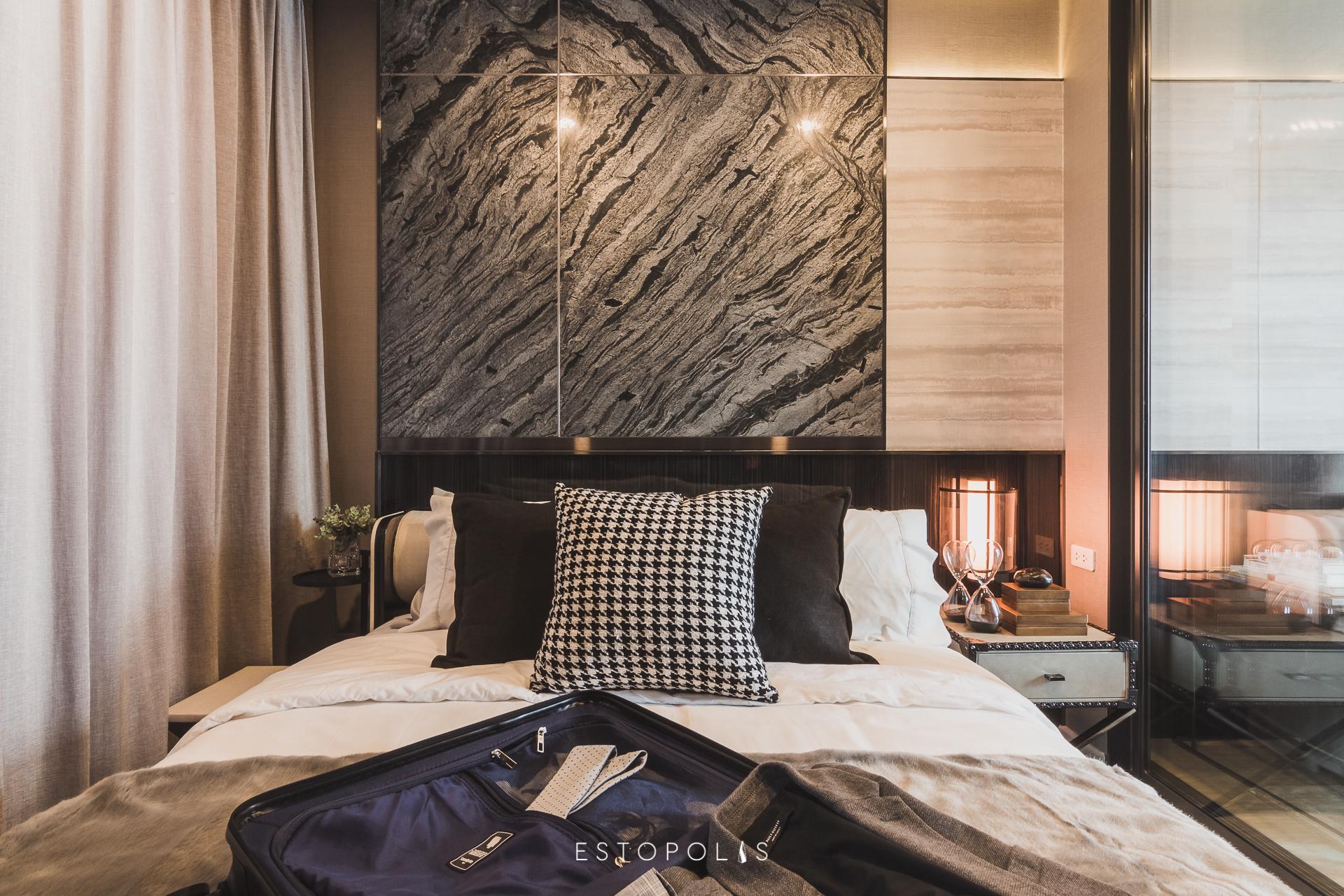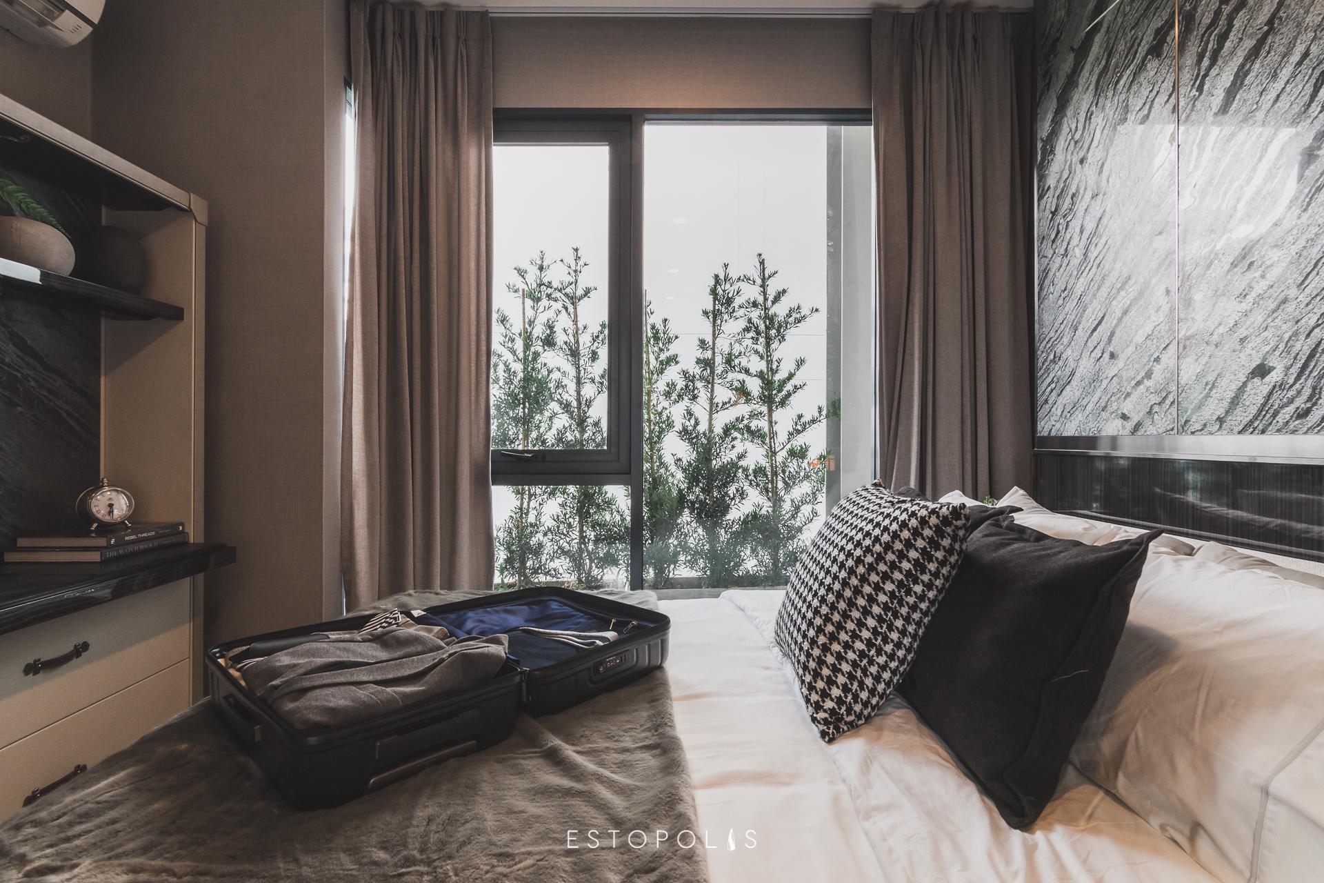 ห้องนอน เน้นรองรับไลฟ์สไตล์การพักผ่อน ด้วยช่องรับแสงบานกว้างที่อยู่ติดด้านใน ทำให้เราสามารถมองเห็นวิวนอกโครงการได้ชัดเจน พื้นห้องปูลานิเมตเช่นเดียวกับห้องนั่งเล่น และมี ตู้เสื้อผ้า บิ้วท์อินให้ 1 ตัวพร้อมผ้าม่าน