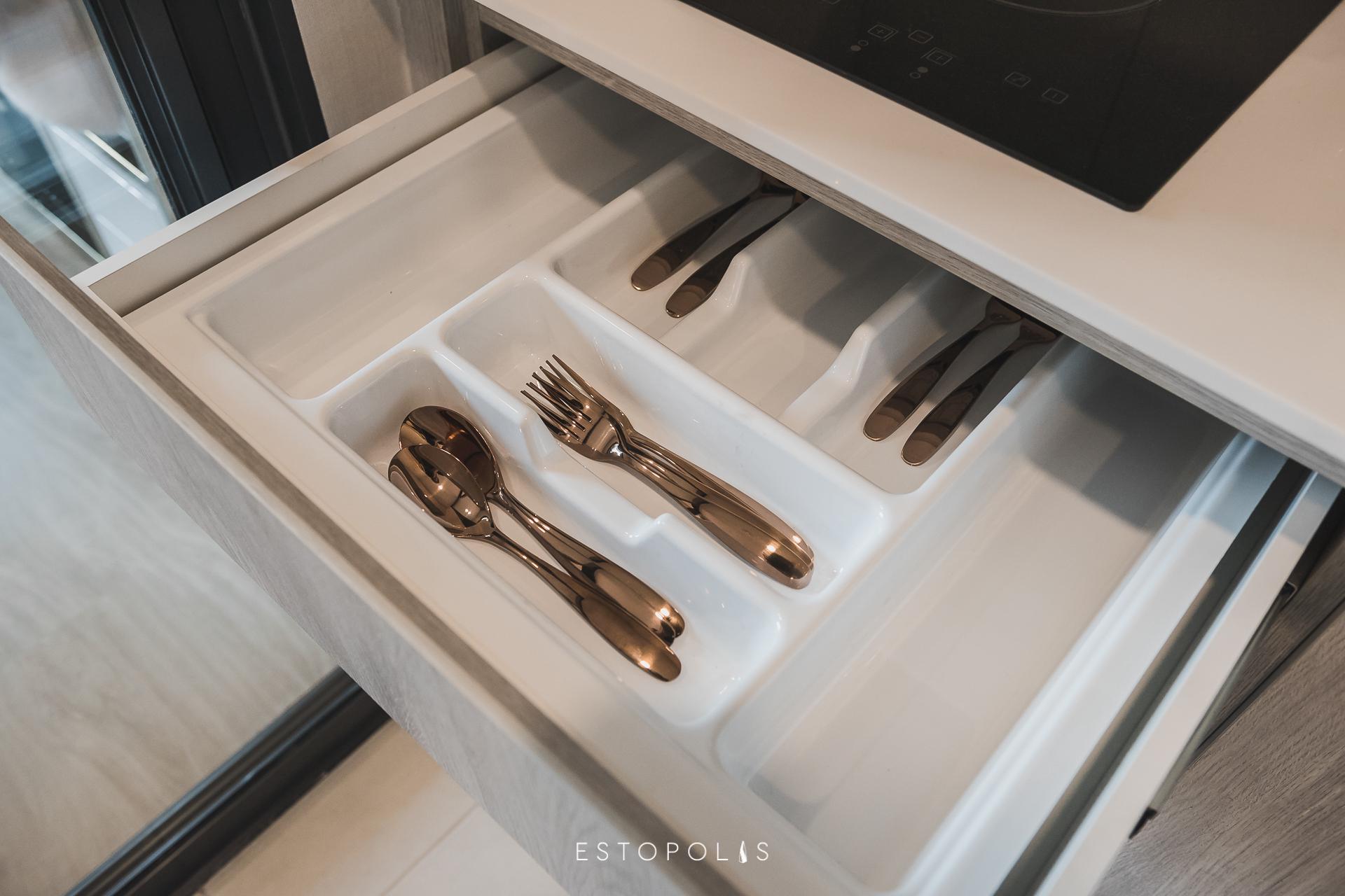 มีแบบห้องให้เลือกหลากหลายตั้งแต่ Studio ไปจนถึง 2 Bedrooms เพื่อรองรับความต้องการที่แตกต่าง จึงค่อนข้างเหมาะสำหรับผู้พักอาศัย 1-2 คน ที่ต้องการห้องขนาดกระทัดรัด ดูแลง่าย และ ตกแต่งแบบ Fully Fitted ให้เฟอร์นิเจอร์บิ้วท์อิน (Built in) บางรายการ ได้แก่