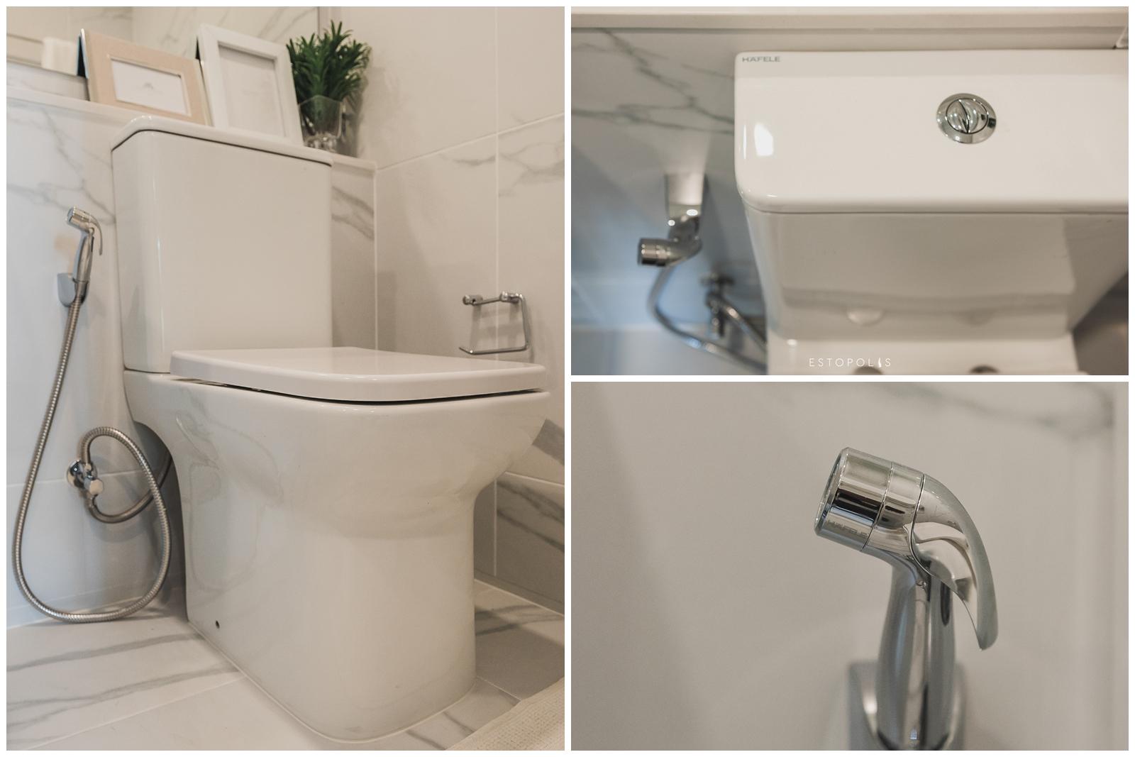 ชุดโถสุขภัณฑ์ ทั้งสายฉีดชำระและแท่นใส่กระดาษทิชชู่ก็ยังเป็นของ HAFELE เช่นเดิม