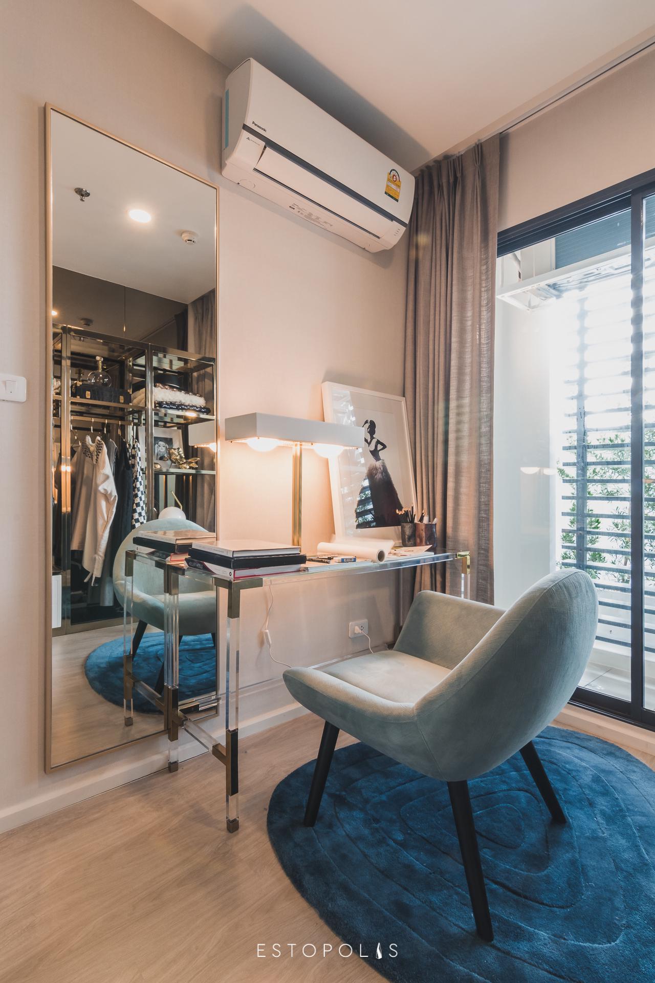 หากใครชอบทำงานในคอนโด อาจตกแต่งห้องอเนกประสงค์นี้ให้กลายเป็นห้องทำงานและห้องแต่งตัวอย่างอย่างห้องตัวอย่างได้ ซึ่งห้องนี้จะมีขนาดเล็กกระทัดรัดกว่าห้องนอนเล็กน้อย จึงเหมาะสำหรับการตกแต่งแบบบิลท์อิน (Built in) หรือจะเปลี่ยนเป็น ห้องนอนเล็ก ก็ยังพอวางเตียงขนาด 3 ฟุตได้อยู่ห้องอเนกประสงค์ เซียล่า ศรีปทุม (CIELA Sripathum)