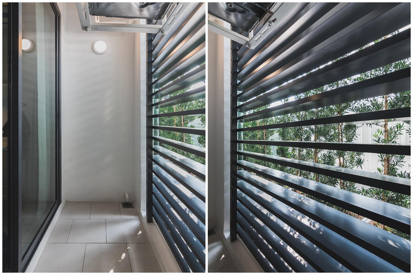 ระเบียงของโครงการ จะกั้นด้วยระแนงปิดถึงเพดานแทนการทำราวกันตก ซึ่งจะให้ความปลอดภัยมากกว่า โดยให้แสงลอดผ่านซี่เหล็กเข้ามา