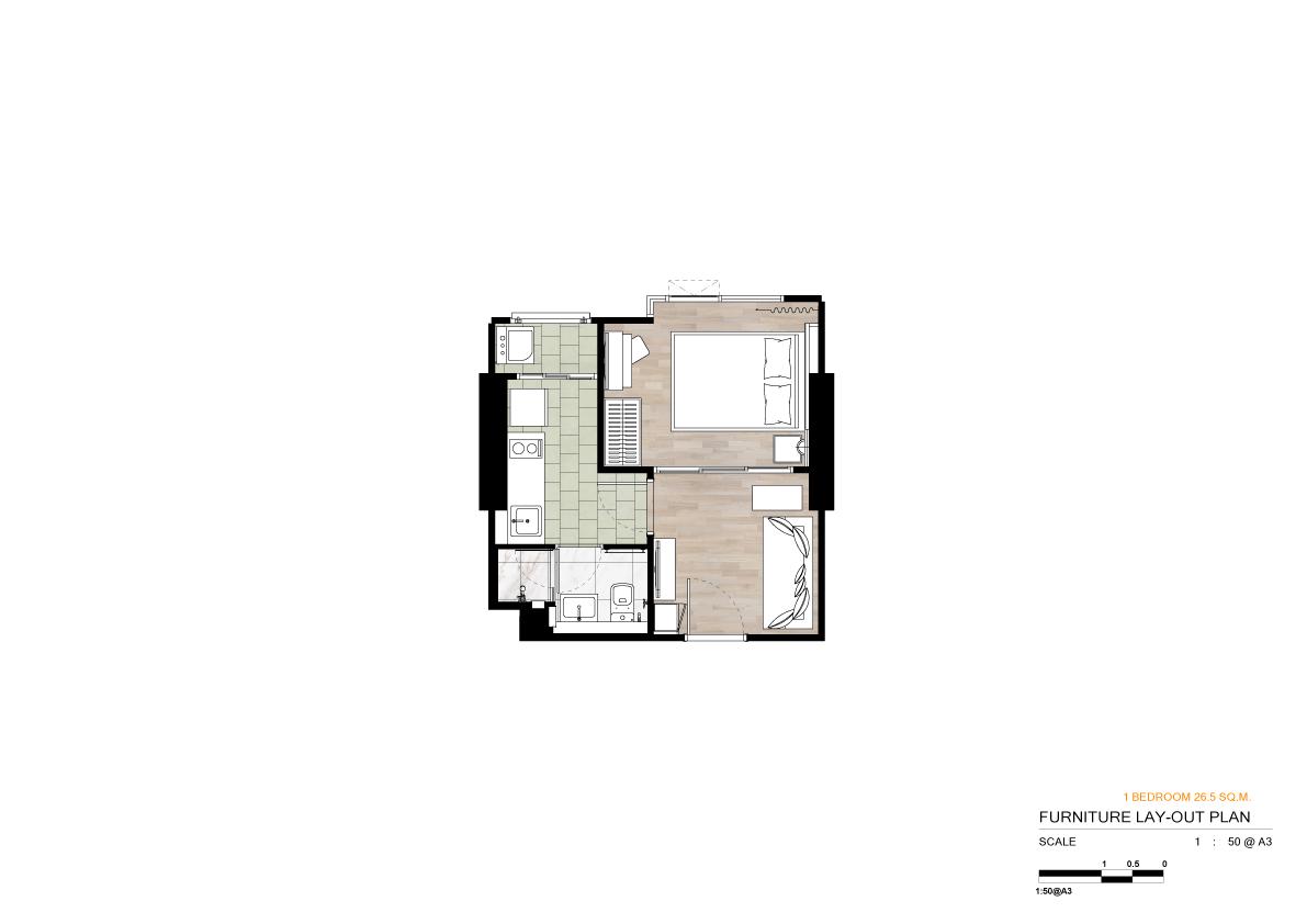 - 1 Bedroom ขนาดพื้นที่ใช้สอย 26.50 ตารางเมตร