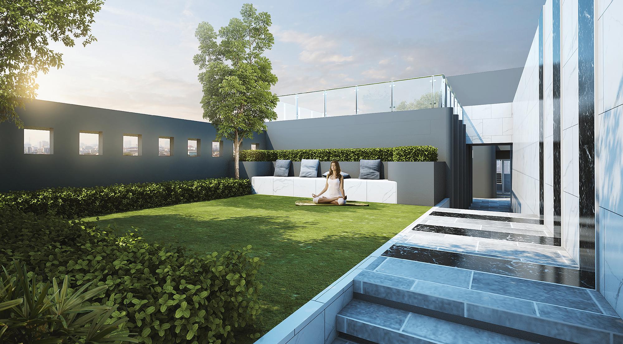 ท่ามกลางบรรยากาศร่มรื่นของสวนหย่อมที่ถูกยกขึ้นมาอยู่บนชั้น 8 ทำให้เราใกล้ชิดความสุนทรีย์ได้ง่ายขึ้น สามารถมองเห็นวิวเมืองรอบทิศทาง ช่วยสร้างความรู้สึกพิเศษในทุกๆ วัน
