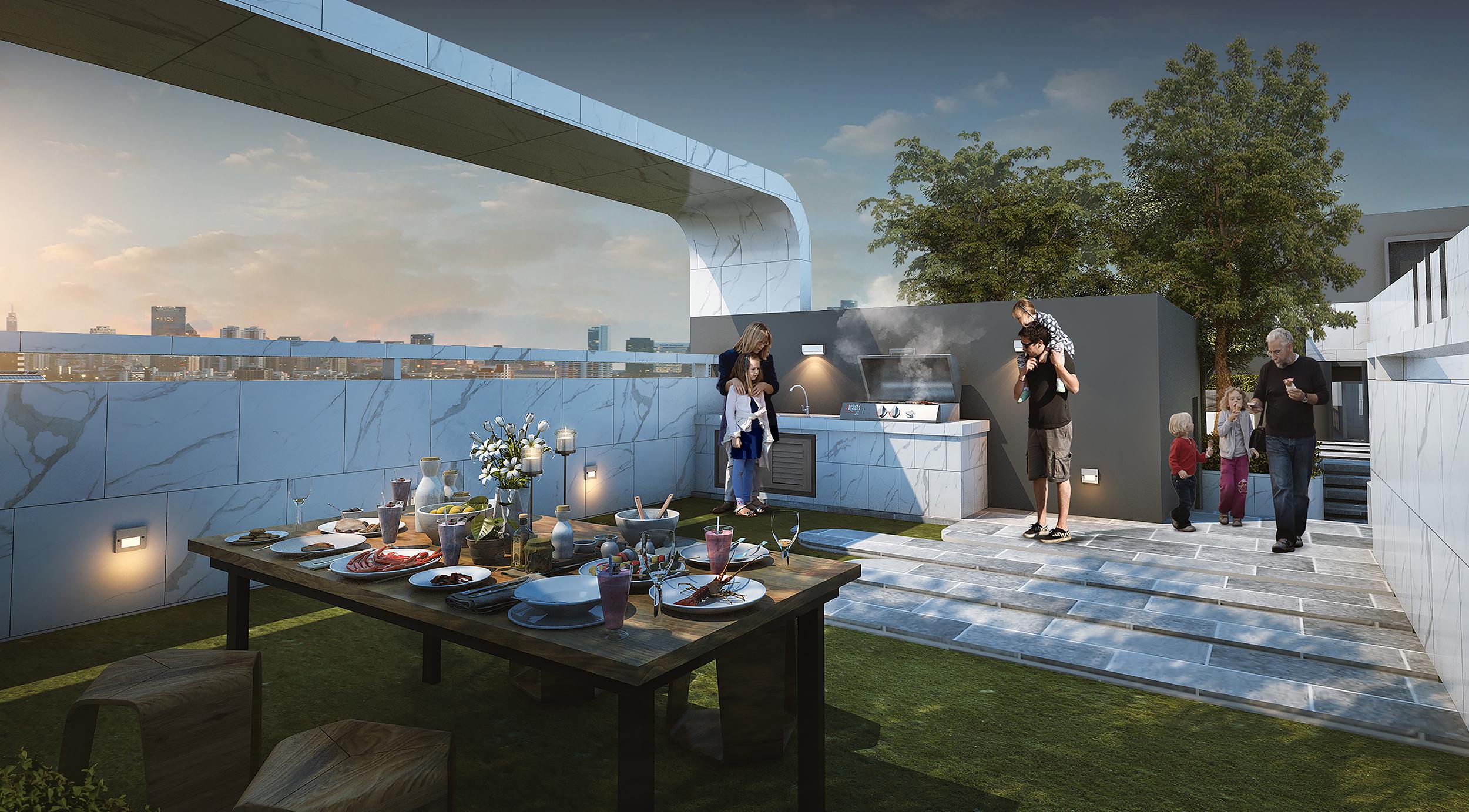 ให้ความสำคัญกับทุกด้านของชีวิตไปพร้อมๆ กัน ด้วยพื้นที่สังสรรค์ BBQ Area ที่ทางโครงการออกแบบให้เปิดโล่ง เพื่อตอบสนองช่วงเวลาที่ลงตัวและสมบูรณ์แบบ ไม่ว่าจะปาร์ตี้กับครอบครัวหรือกลุ่มเพื่อนก็มีความสุขได้ง่ายๆ