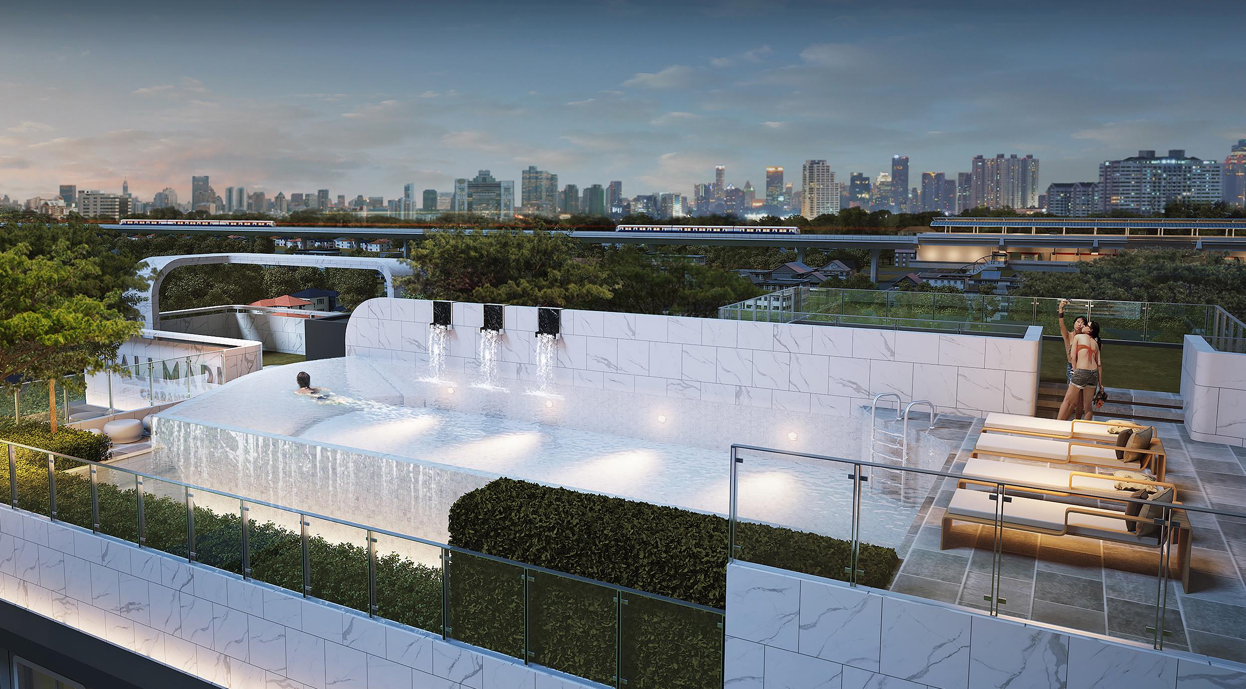 ขยับไปออกกำลังกายชิลล์ๆ พร้อมสัมผัสความสุนทรีย์ในการอยู่อาศัยที่สระว่ายน้ำแบบ Sky Pool พร้อม Sunken Seat ที่นั่งริมสระสำหรับคนที่อยากขึ้นนอนเล่น อาบแดด