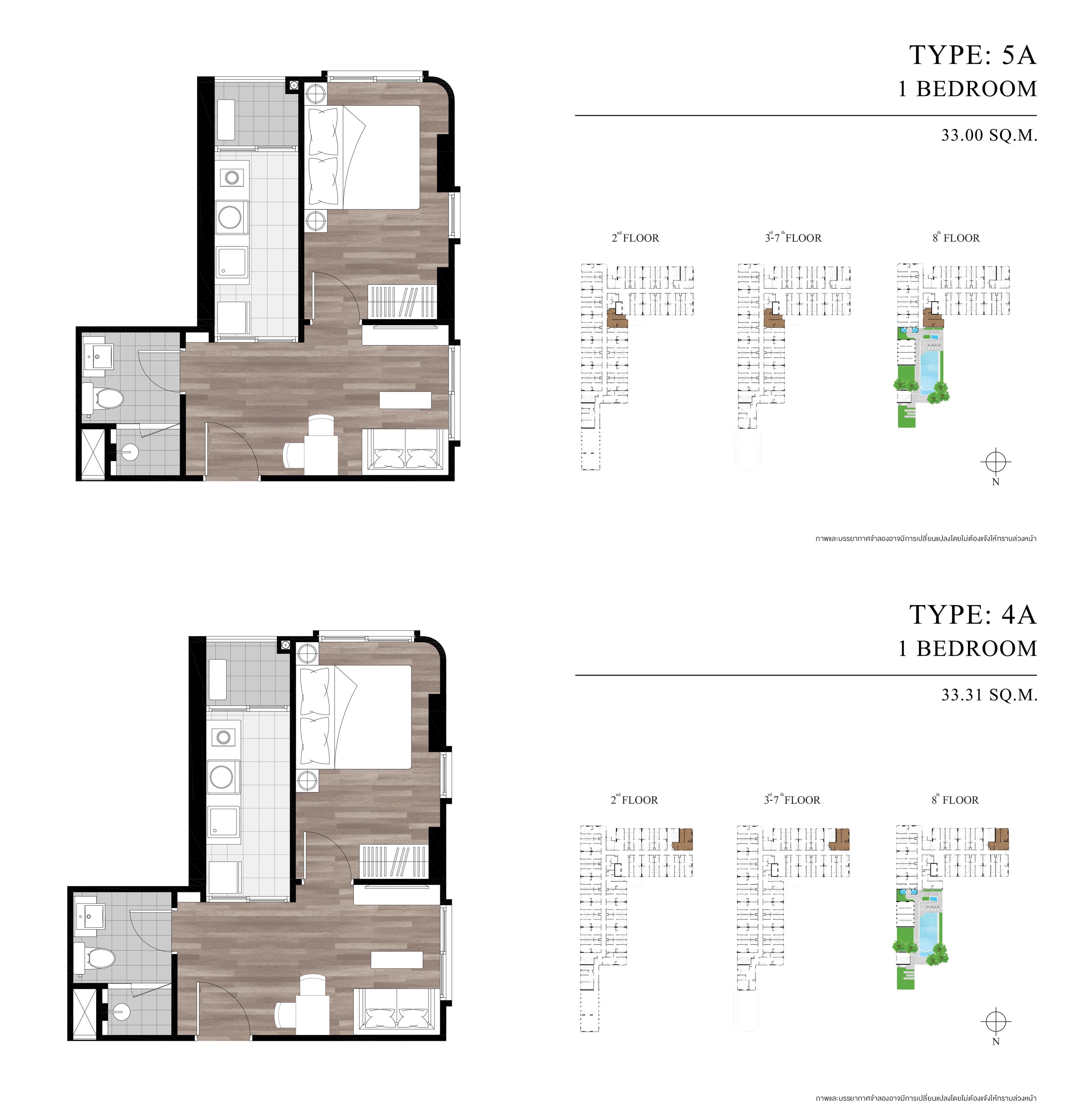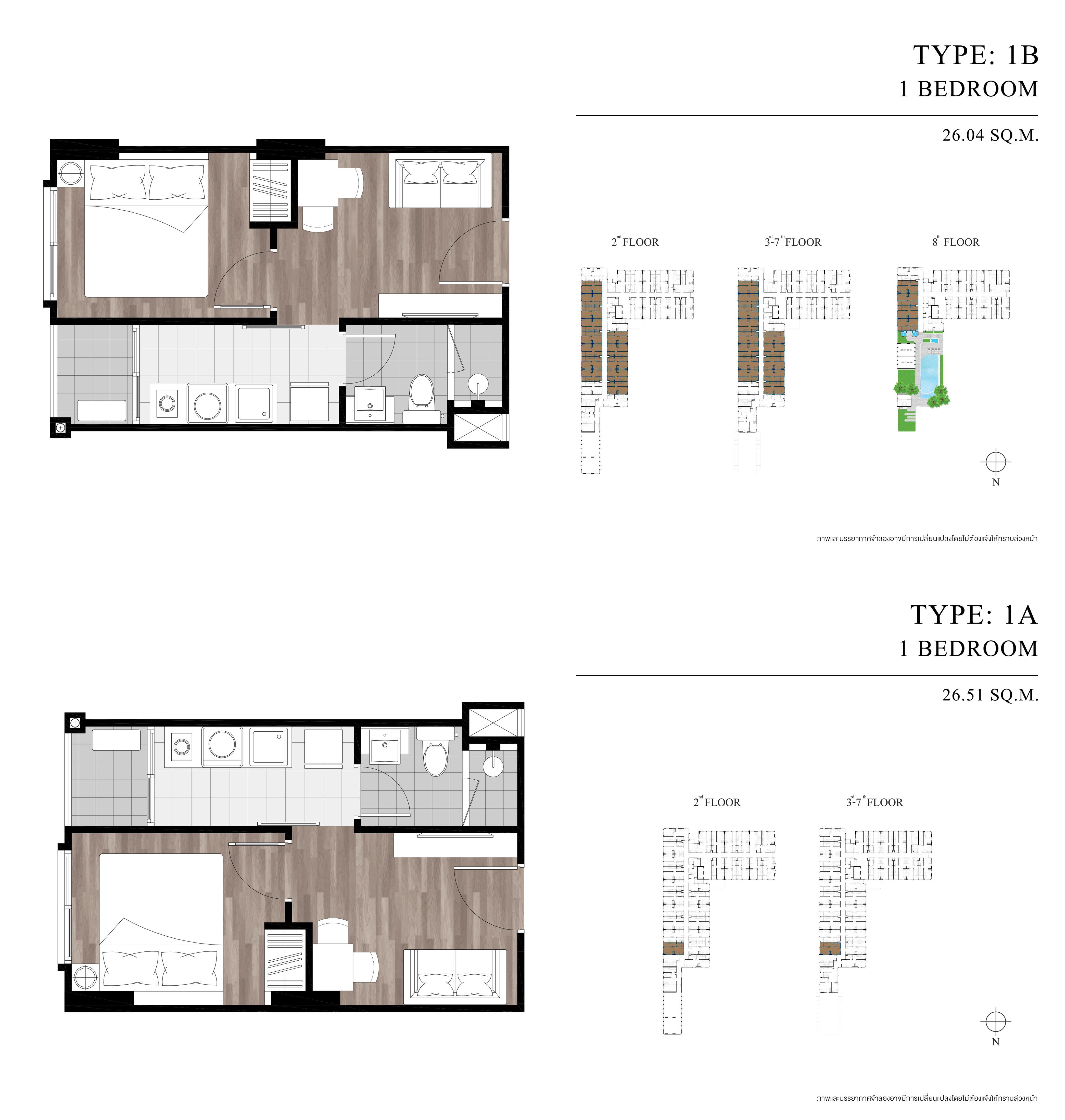 - 1 ห้องนอน ขนาด 26-33 ตารางเมตร