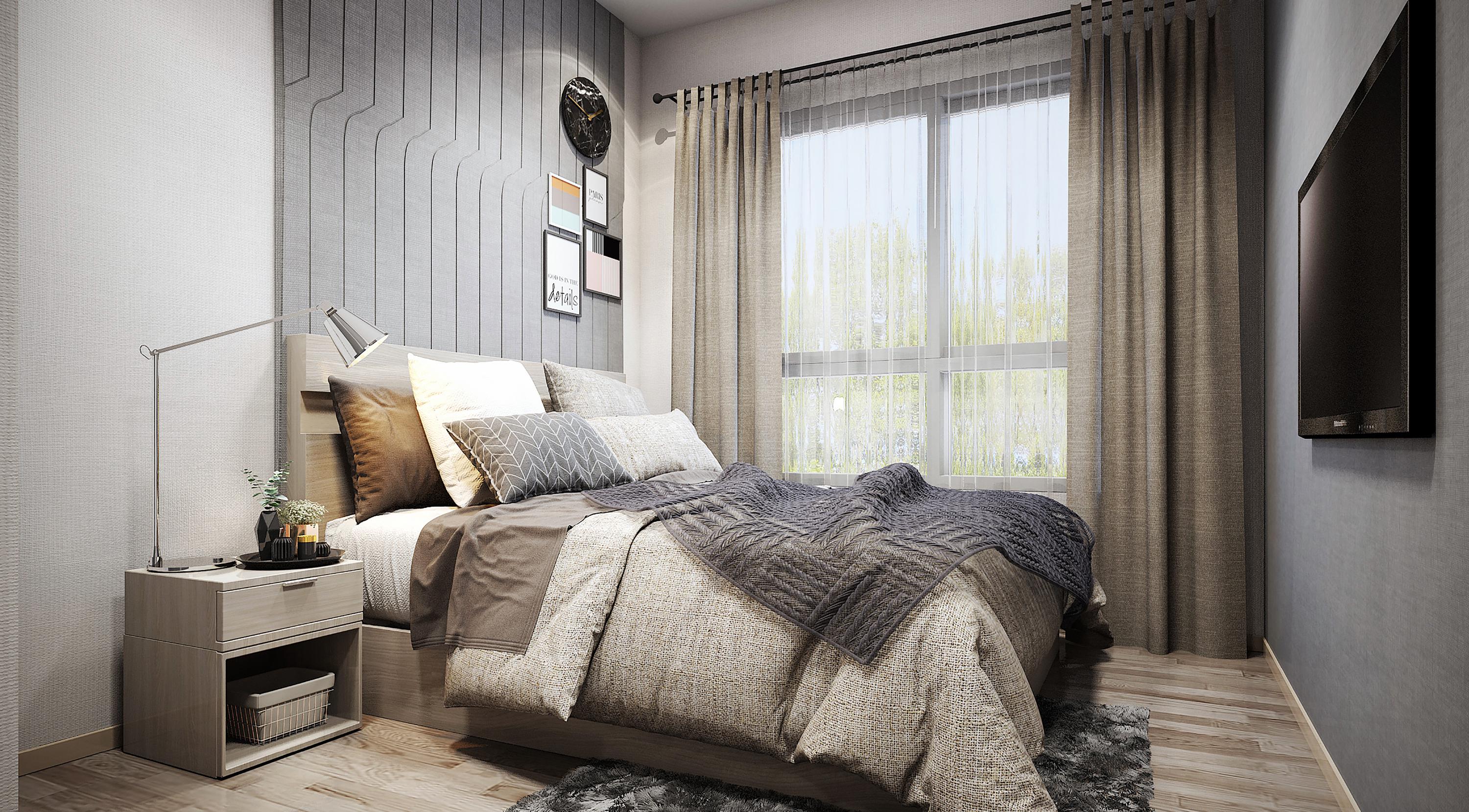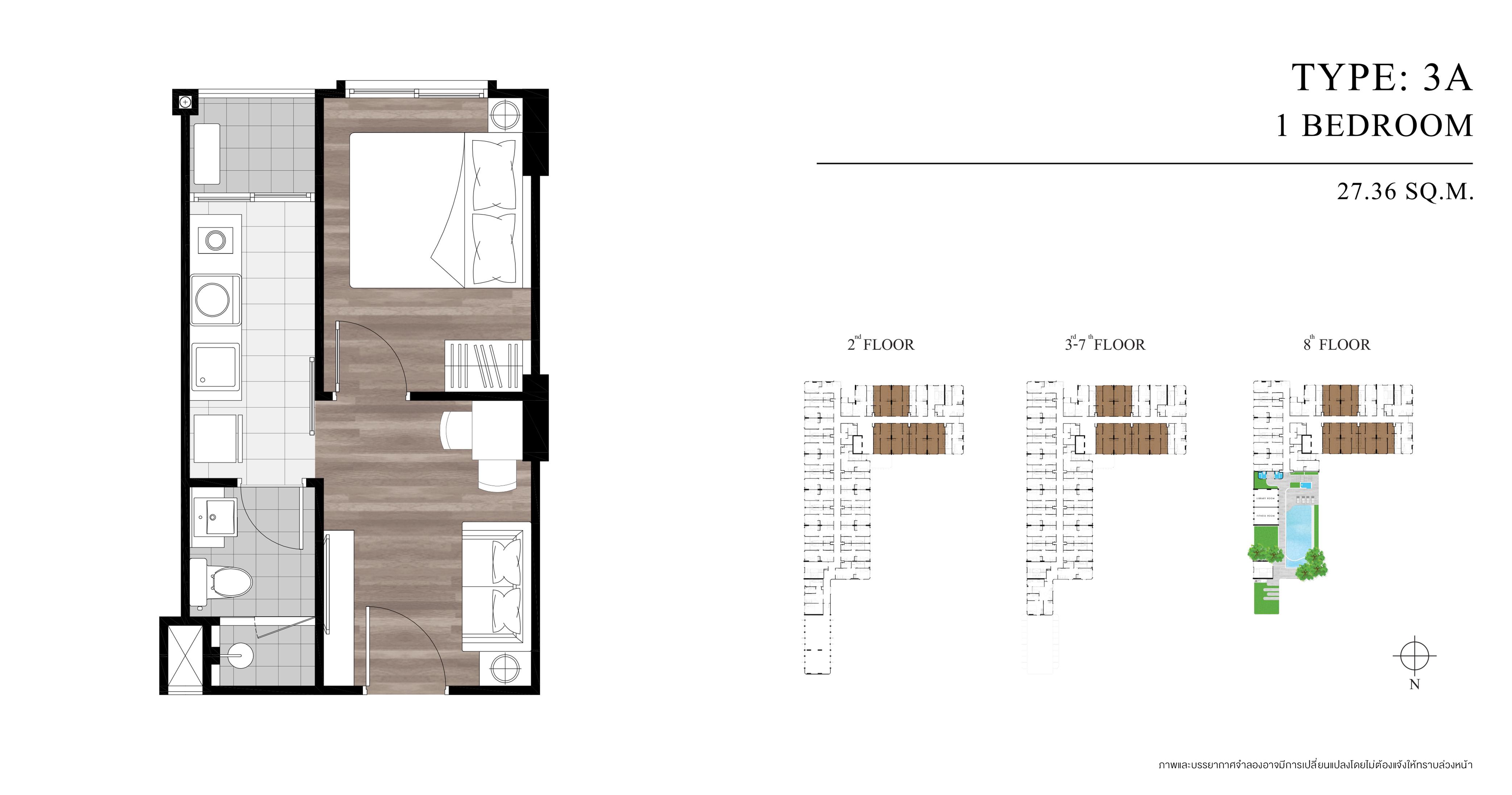 ขยับขยายพื้นที่ขึ้นไปอีกนิด...เพื่อให้เราก้าวเดินได้สะดวกสบายมากขึ้น ด้วยห้องพักอาศัยขนาด 27.36 ตารางเมตร เพื่อเป็นตัวเลือกให้กับการใช้ชีวิตที่เป็นสัดเป็นส่วนชัดเจน ทั้งยังสามารถจัดวางฟังก์ชันการใช้สอยภายในห้องได้อย่างสะดวก ตั้งแต่หน้าประตูไปจนถึงห้องนอน