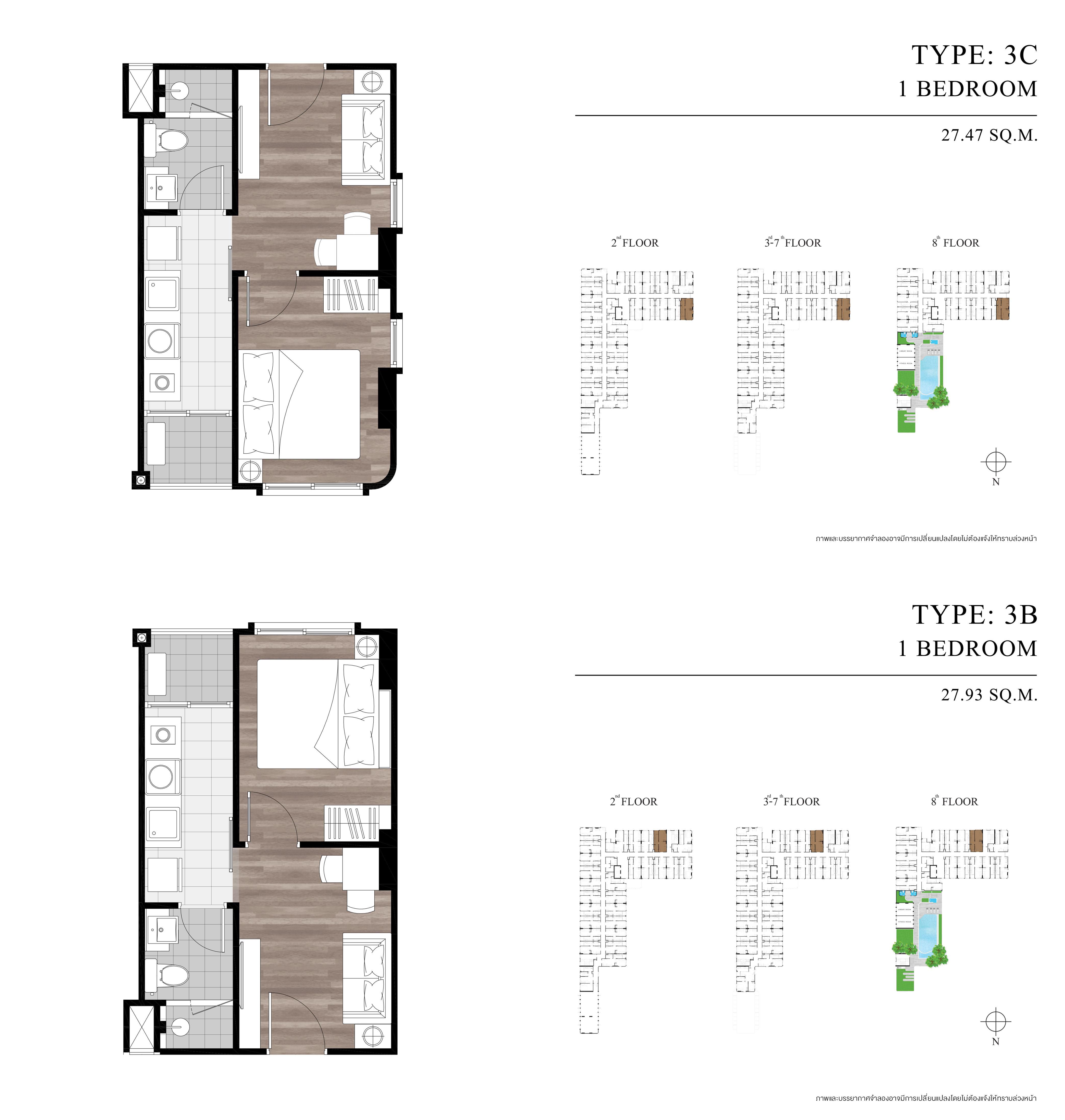 แต่เมื่อขึ้นมาที่ชั้น 3 ไปจนถึงชั้น 7 ก็จะเป็นพื้นที่ของการพักอาศัยอย่างเต็มรูปแบบ โดยแต่ละชั้นจะมีห้องชุดพักอาศัยคละแบบ คละขนาดกันไปตั้งแต่ 1 Bedroom, 1 Bedroom Plus และ 2 Bedrooms พร้อมลิฟต์แบบล็อกชั้นจำนวน 2 ตัวอยู่กลางอาคาร ซึ่งหากใครชอบความเงียบสงบก็แนะนำให้เลือกห้องที่อยู่ริมอาคารแทน