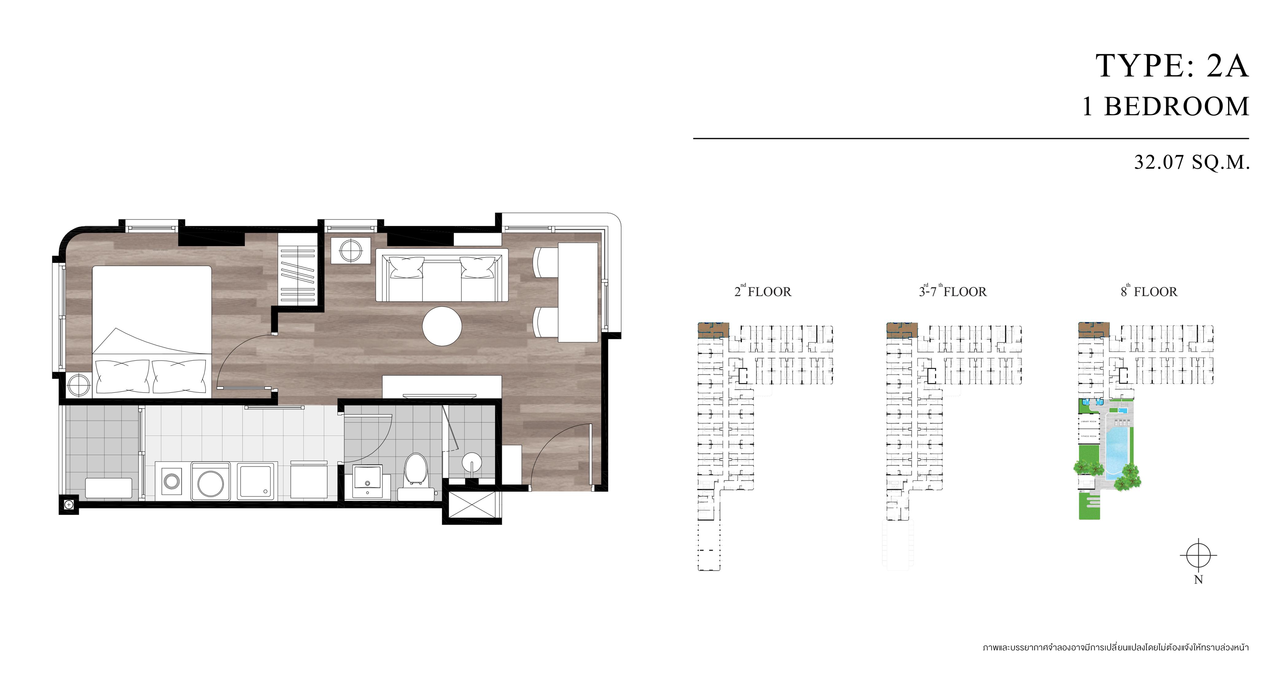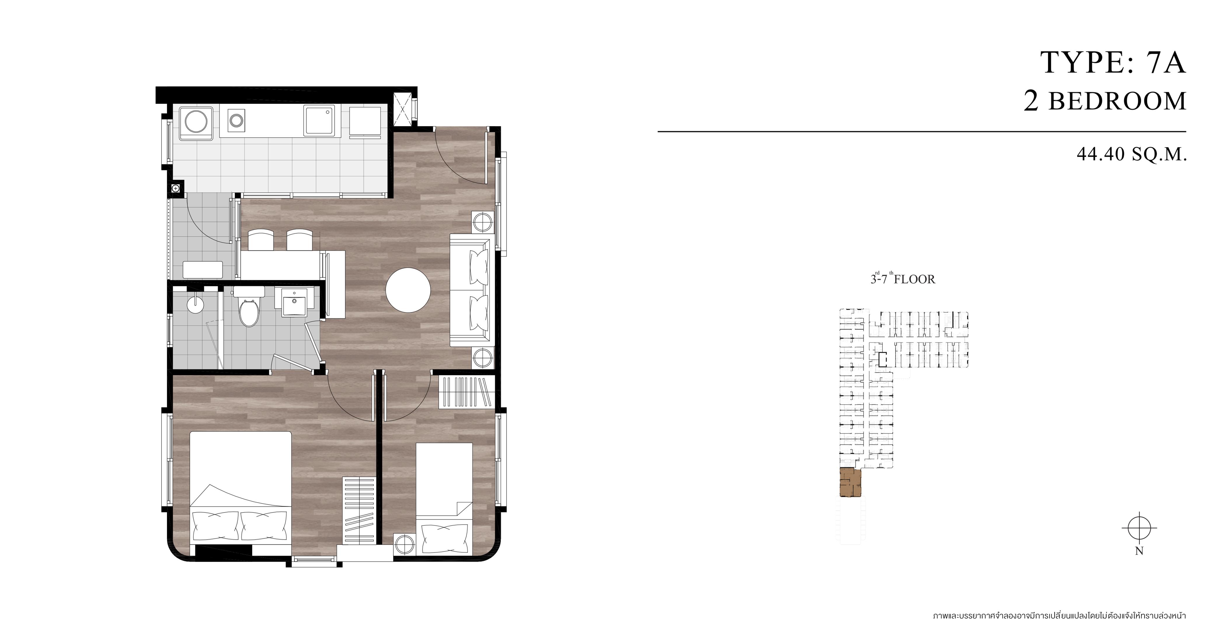 - 2 ห้องนอน ขนาด 44.40 ตารางเมตร