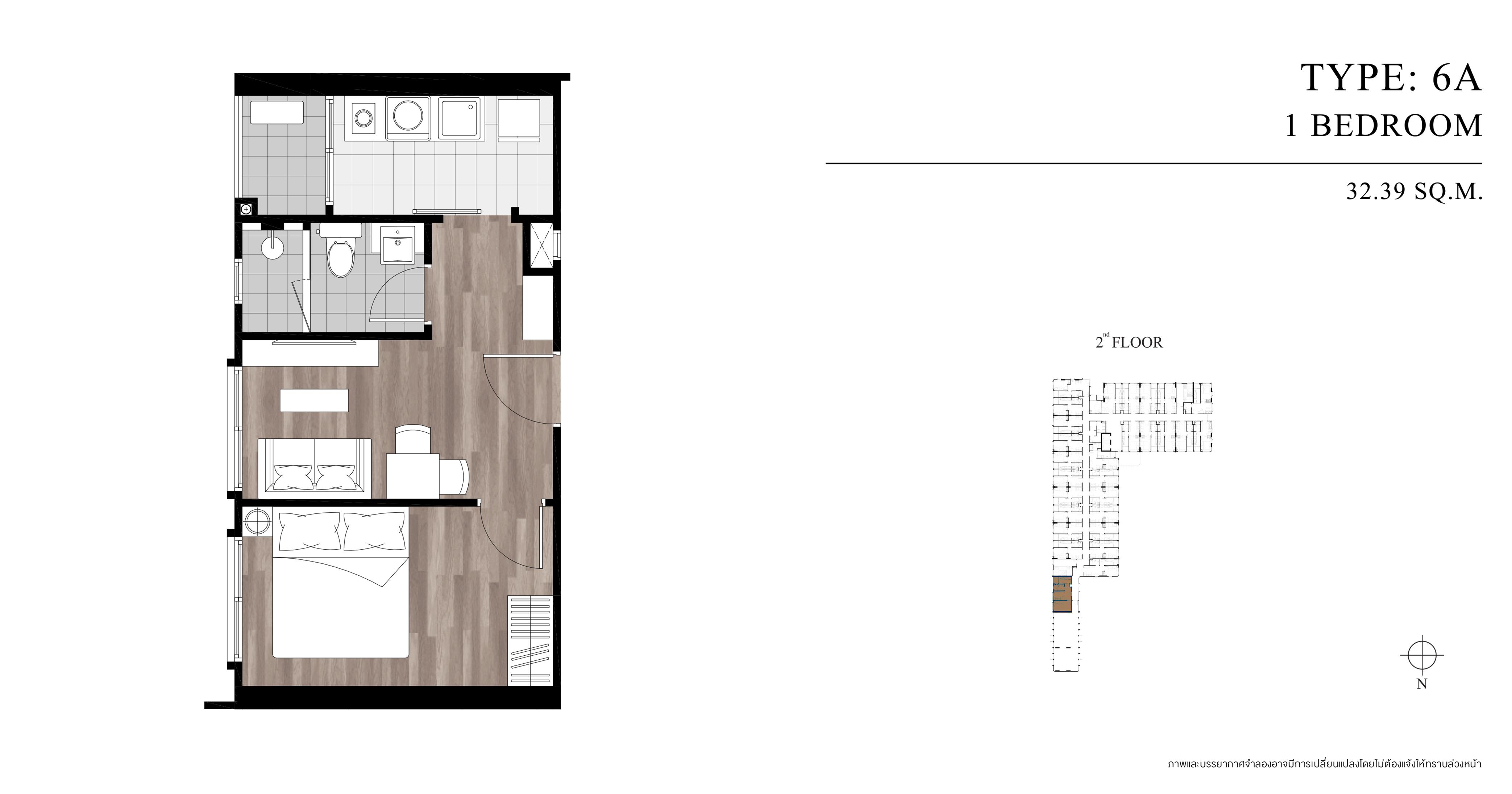 สำหรับใครที่ชอบห้องหน้ากว้างก็ต้องเลือกห้องขนาด 32.39 ตารางเมตร ที่มีเพียงห้องเดียวบนชั้น 2 พร้อมออกแบบให้ห้องนั่งเล่น, ห้องนอน, ห้องน้ำ และห้องครัวสามารถรับแสงจากภายนอกได้อย่างเต็มที่ทุกห้อง