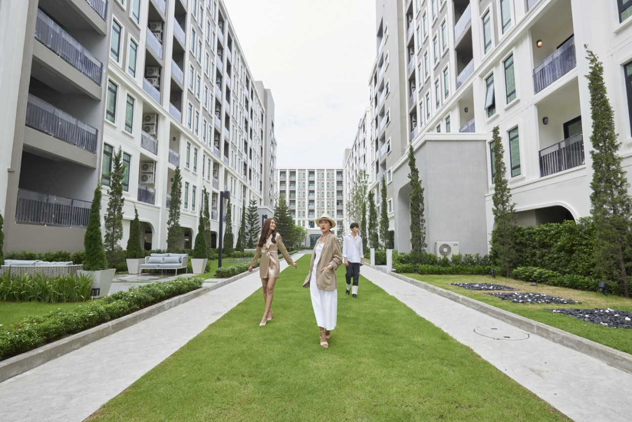 - Luxe Green Space – สวนส่วนกลางเล่นระดับ เป็นที่นั่งแบบขั้นบันได ล้อมรอบด้วยสวนสีเขียวสไตล์อังกฤษ (Courtyard) พร้อมไม้ยืนต้นขนาดใหญ่ ที่ให้ความร่มรื่น มีชุดที่นั่งพักผ่อนใจกลางสวน สูดอากาศดีๆ ทั้งยามเช้าและยามเย็น