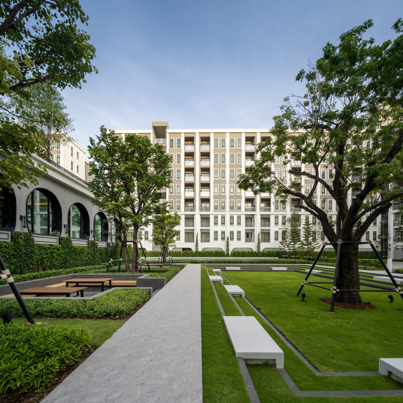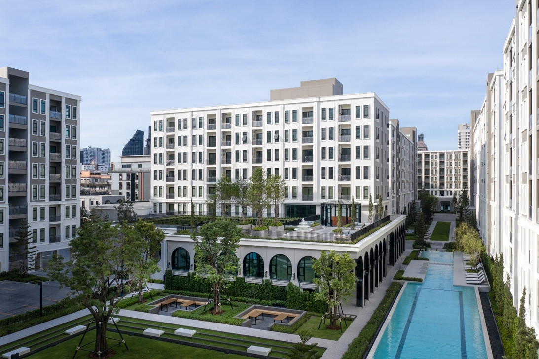 สถาปัตยกรรมสไตล์อังกฤษที่ผสมผสานความทันสมัยอย่างลงตัว สะท้อนไลฟ์สไตล์ของคนรุ่นใหม่ ใครได้เห็นเป็นต้องถูกสะกดกับลายเส้นโค้งมน สลับกับเส้นสายที่สร้างความรู้สึกมั่นคงแข็งแรงในคราวเดียวกัน พร้อมกับพื้นที่ส่วนกลางสีเขียว Courtyard ขนาดใหญ่และร่มรื่น เมื่อเข้ามาภายในโครงการ จะรับรู้ได้ถึงความสงบ ส่วนตัว เหมือนได้อยู่ในรีสอร์ทสุดหรู หลีกหนีความเร่งรีบย่านกลางเมือง