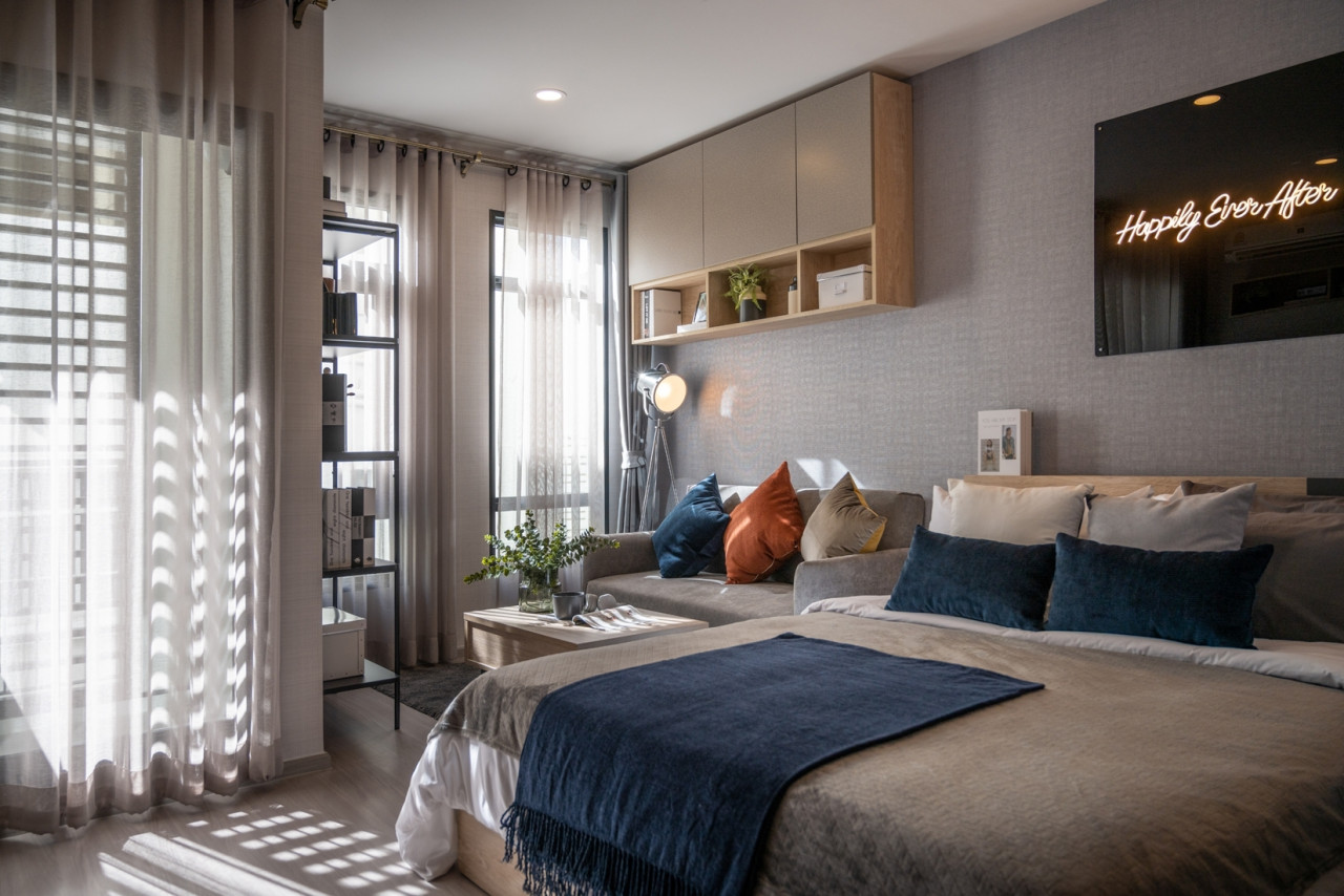และด้วยการออกแบบห้องให้ Flexible ทำให้สามารถรวาง Loose Furniture ได้หลากหลาย ปรับเปลี่ยนรูปแบบของ Layout โดยจำเป็นต้องไม่ยึดติดกับมาตรฐานการตกแต่งห้องแบบเดิมๆ สร้างพื้นที่ หรือมุมใหม่ๆ ในห้องได้เสมอ ให้เหมาะกับทุกกิจกรรมที่ผู้พักอาศัยชอบ ปัจจุบัน วิถีชีวิตคนเมืองอาจใช้เวลาอยู่ในที่พักเพิ่มมากขึ้นจากการเก็บตัวช่วงโควิด-19 และทำให้รูปแบบการใช้ชีวิตใหม่ๆ สไตล์ “Work From Home” หรือการออกกำลังแบบ “Home Exercise Workout” เป็นต้น