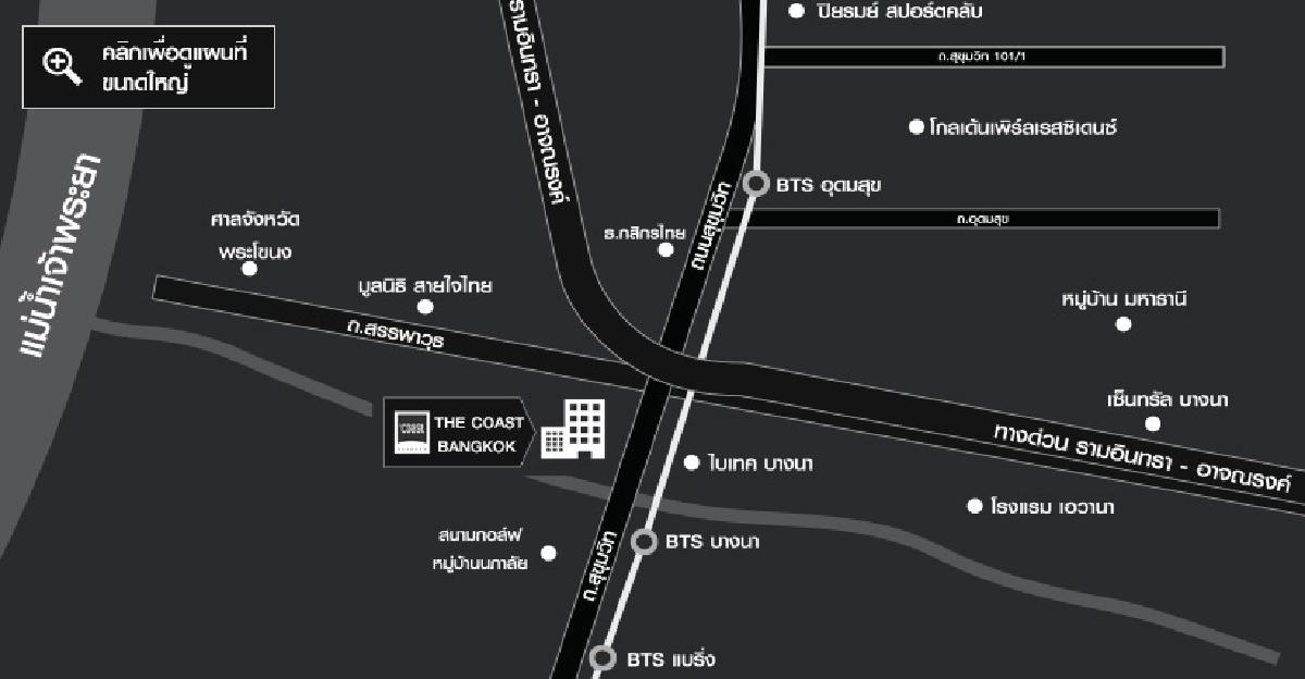 The Coast Bangkok คอนโดหรูกึ่งมอลล์ บริเวณสี่แยกบางนา ห่างจากรถไฟฟ้าสถานีบางนาเพียง 200 เมตร พร้อมการตกแต่งแบบ Fully Furnished ครบครันไปด้วยสิ่งอำนวยความสะดวกที่ทันสมัย พร้อมด้วย Community mall ที่มีร้านอาหารชั้นนำ ร้านค้าสุดฮิป ที่สามารถตอบทุกไลฟ์สไตล์ ในอนาคตยังจะมีทางเดิน Sky walk จากสถานีรถไฟฟ้าเดินเข้าสู่โครงการอีกด้วย!