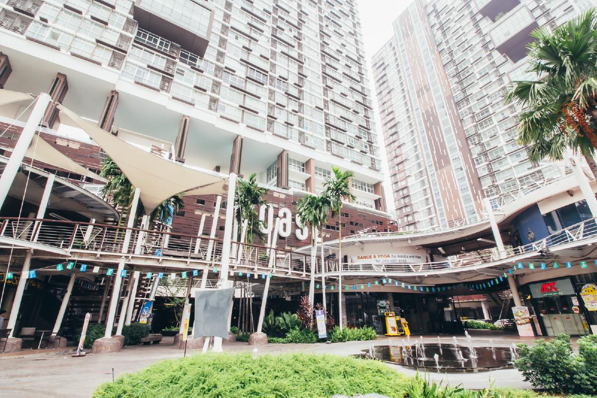 ทางเข้าอาคาร A จะอยู่ด้านหลังลานน้ำพุของคอมมูนิตี้ มอลล์