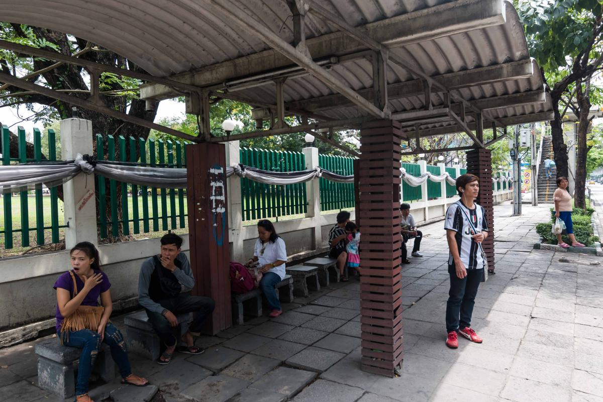 ด้านล่างของทางออกหมายเลข 1 จะมีป้ายรถเมล์ ถ้าใครเดินทางโดยรถเมล์ก็สามารถลงที่ป้ายนี้ แล้วเดินข้ามสะพานไปอีกฝั่ง