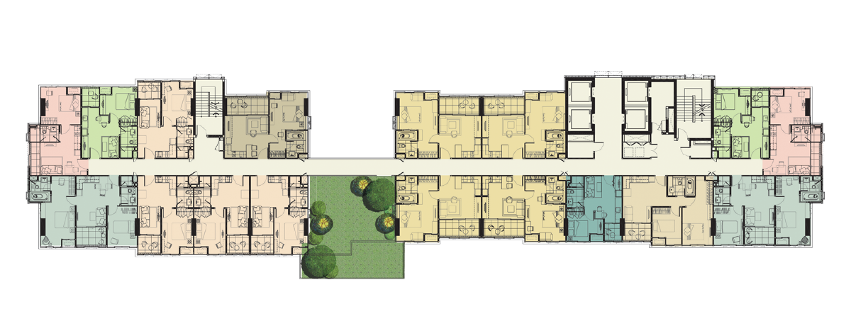 แปลนที่เรานำมาให้ดู เป็นแปลนของชั้นที่ 22 ของอาคาร A ซึ่งเป็นชั้นที่เราได้ทำการรีวิว ในชั้นนี้จะมีห้องขนาด 29.87 ตร.ม. ไปจนถึงห้องขนาด 58.59 ตร.ม. พร้อมด้วย Sky pocket garden ซึ่งเป็นพื้นที่สีเขียวบริเวณกลางอาคาร ไว้ให้ลูกบ้าน ได้นั่งเล่นพักผ่อนรับลม