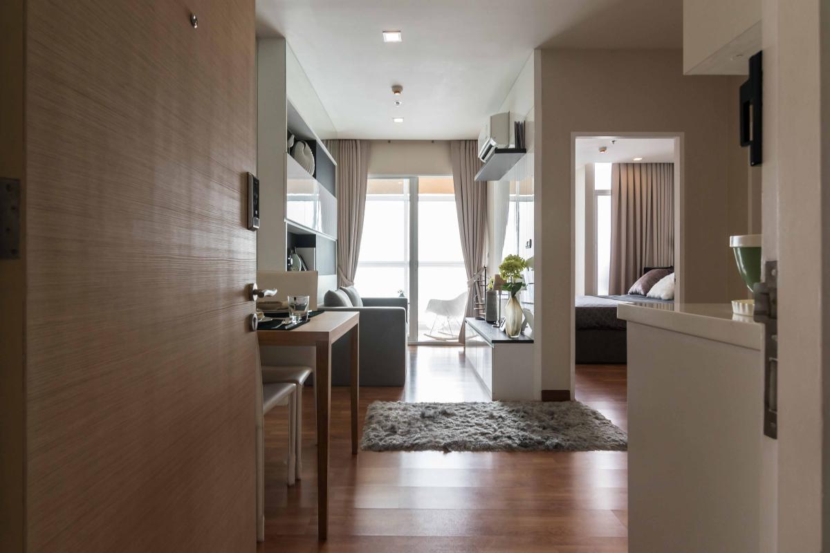 เมื่อเปิดประตูห้องเข้ามา ด้านหน้าจะเป็นผนัง ทางด้านขวาจะเป็นโต๊ะทานข้าว , โซนครัว , โซนนั่งเล่นและระเบียง ส่วนทางซ้ายจะเป็นทางเดินไปห้องนอนและห้องน้ำ