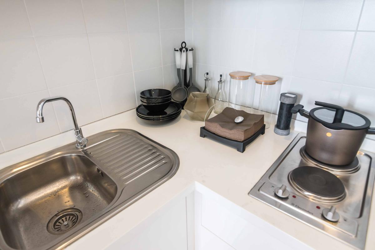 โดยมีอุปกรณ์เครื่องครัวครบ ทั้งเตาไฟฟ้า ที่ดูดควัน ไมโครเวฟ ฯลฯ