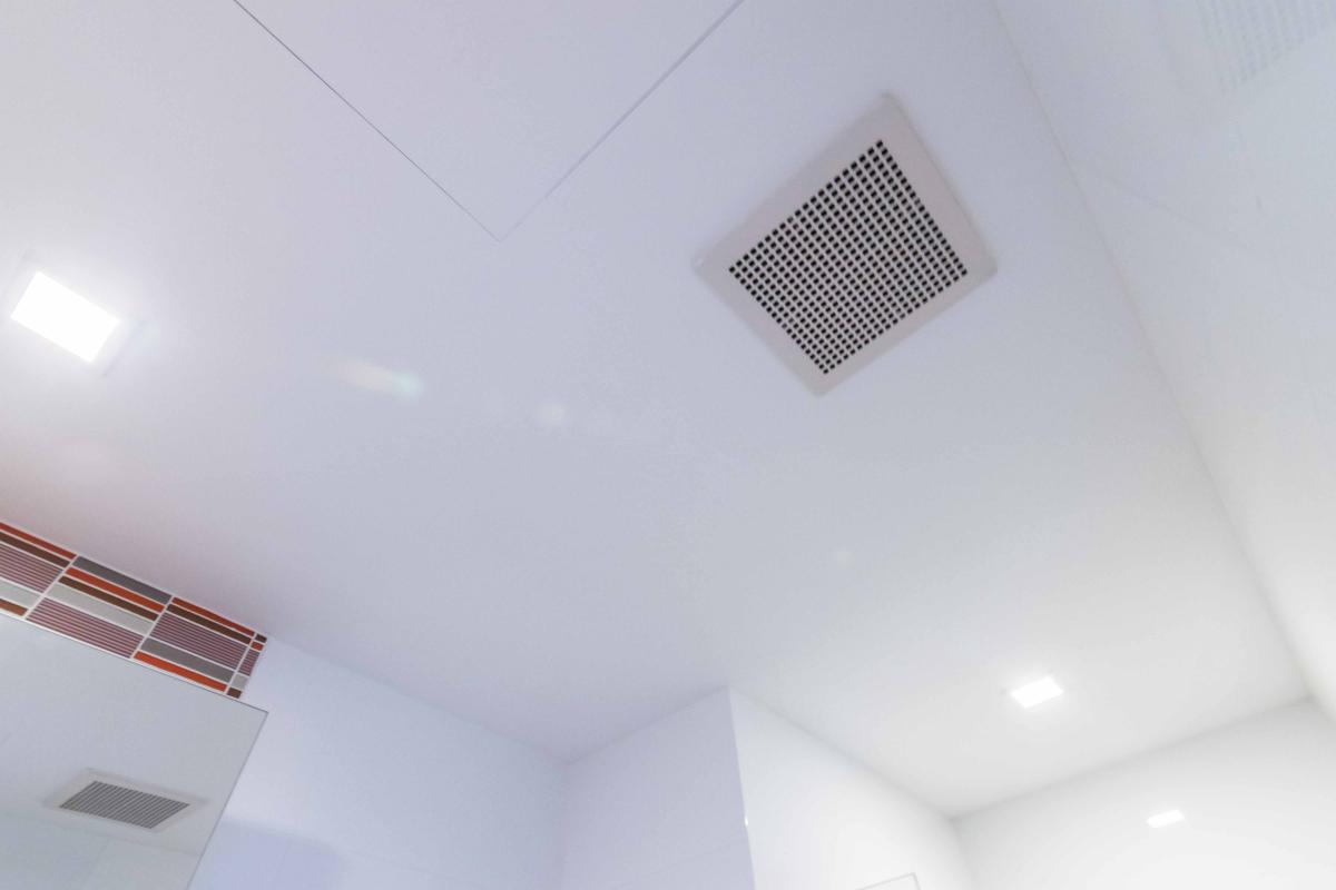 เหนือที่อาบน้ำจะมีที่ดูดอากาศอีก 1 ตัว ไว้ระบายอากาศในห้องน้ำ