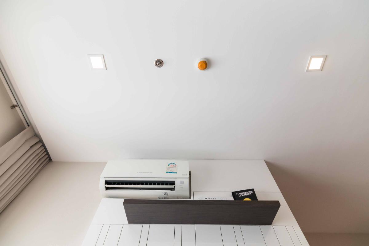 บริเวณผนังจะมีแอร์ให้ 1 ตัว ส่วนเพดานจะเป็นที่ติดตั้งสัญญาณเตือนไฟไหม้