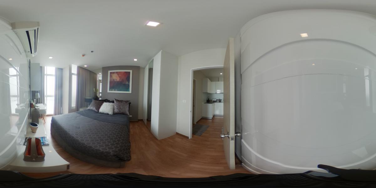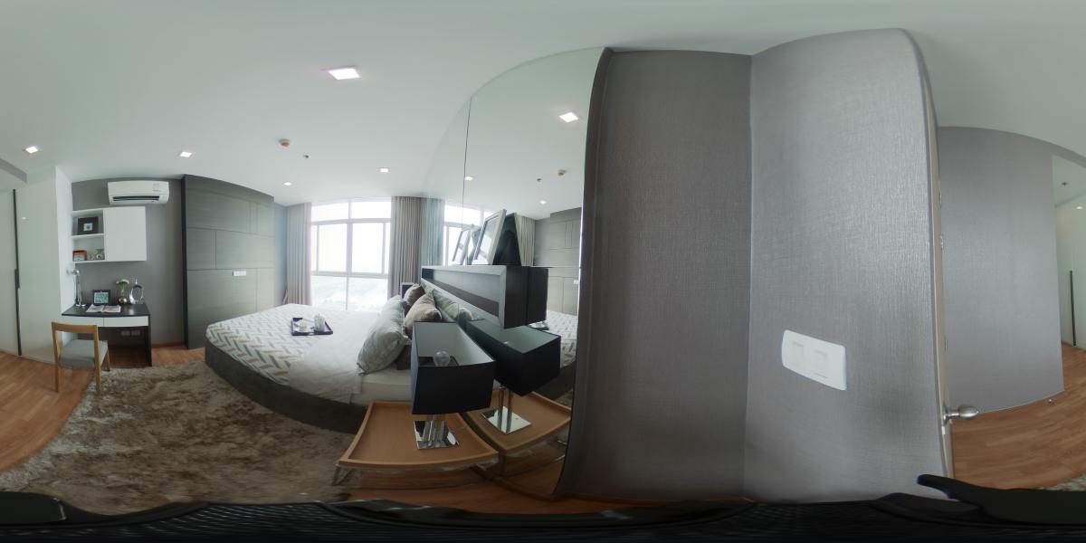 ภาพ 360 ของห้องนอนใหญ่ จะมีเฟอร์นิเจอครับทุกอย่าง เตียง ตู้เสื้อผ้า โต๊ะทำงาน เครื่องปรับอากาศ