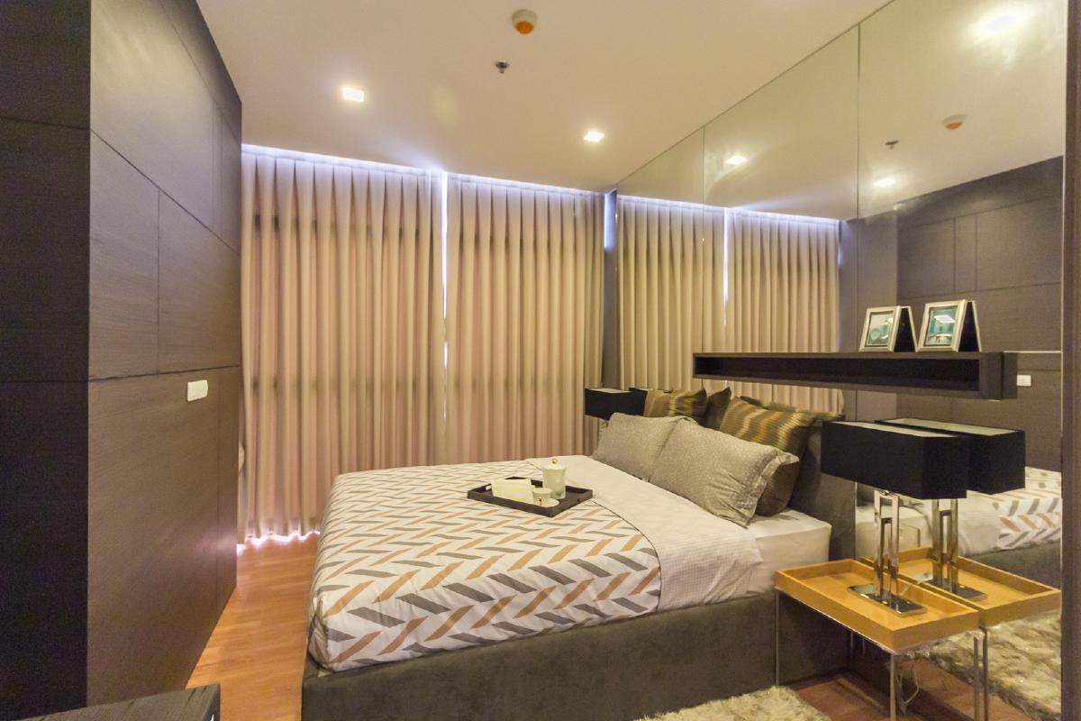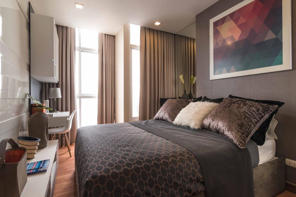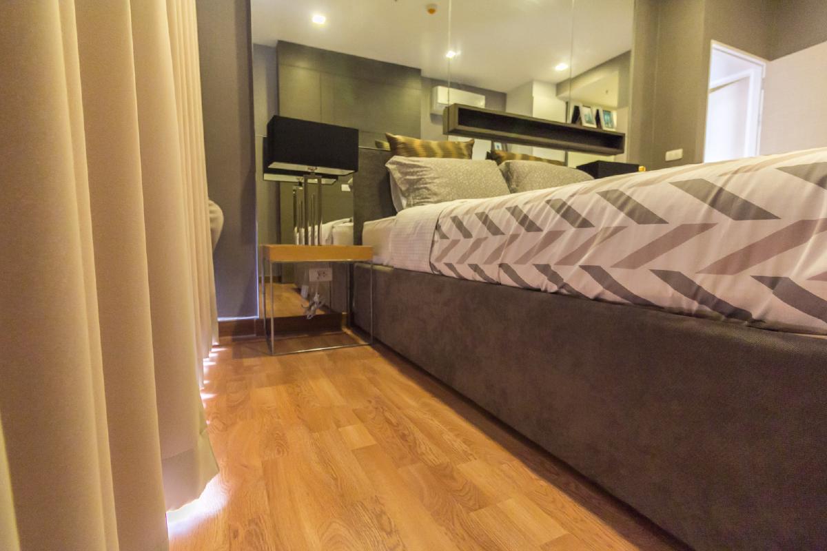ห้องนอนจะเป็นโทนสีเทา ดำ ที่นอนจะเป็นขนาด 5 ฟุต ส่วนเตียงนอนนั้นมีลักษณะเหมือนกล่อง ด้านข้างทึบ หัวเตียงตกแต่งด้วยภาพศิลปะ ส่วนปลายเตียงเป็นชั้นวางทีวี และมีทางเดินเล็กๆ