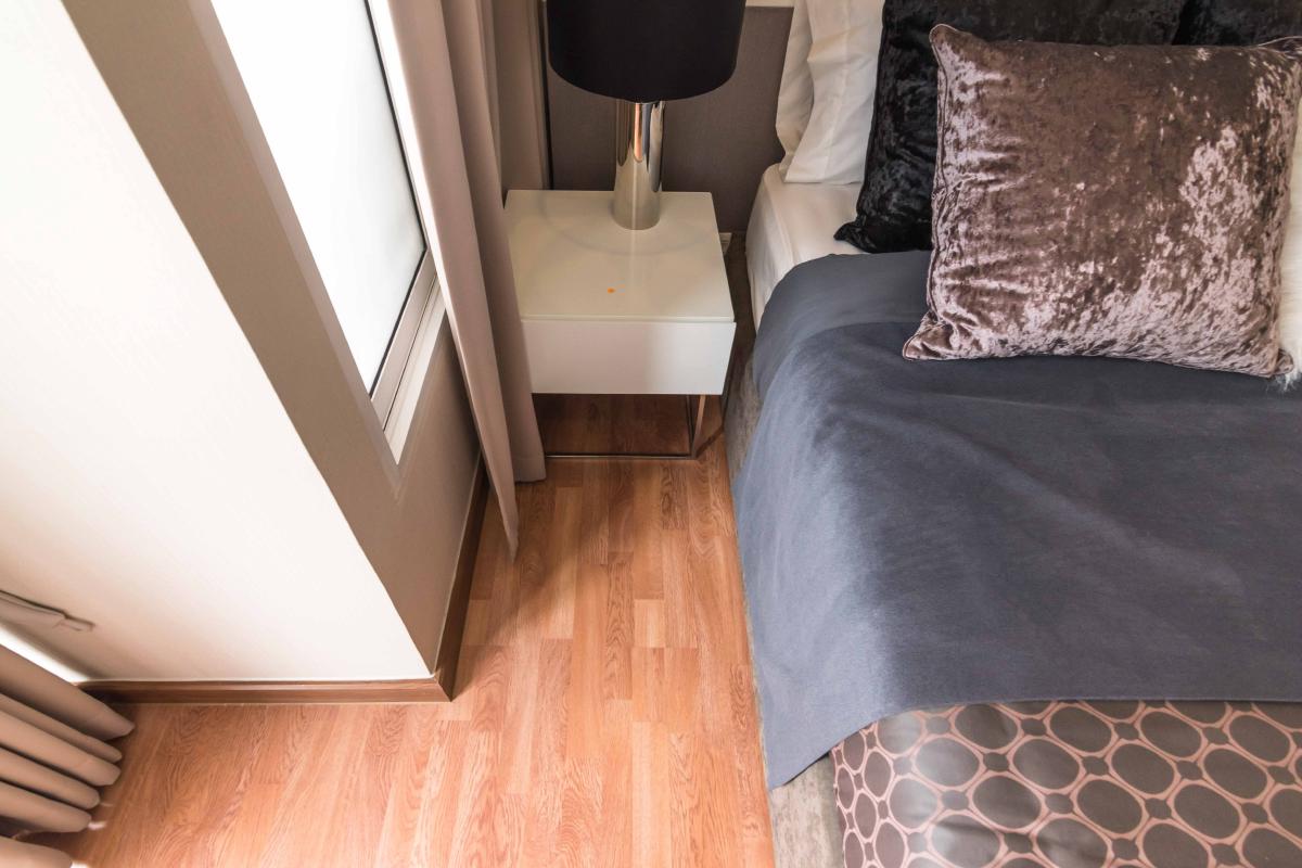พื้นห้องจะเป็นลามิเนตไม้ ที่นิยมใช้กันทั่วไป โดยจะมีธรณีประตูกั้นไม่ให้ฝุ่นหรือเศษผงอะไรเข้าห้อง